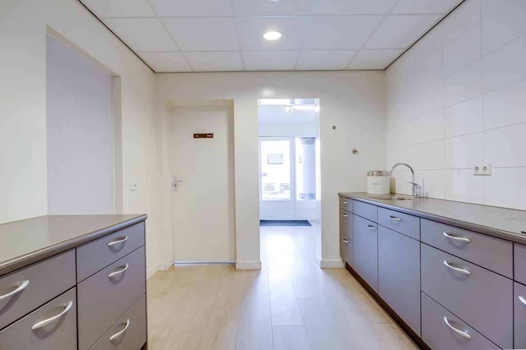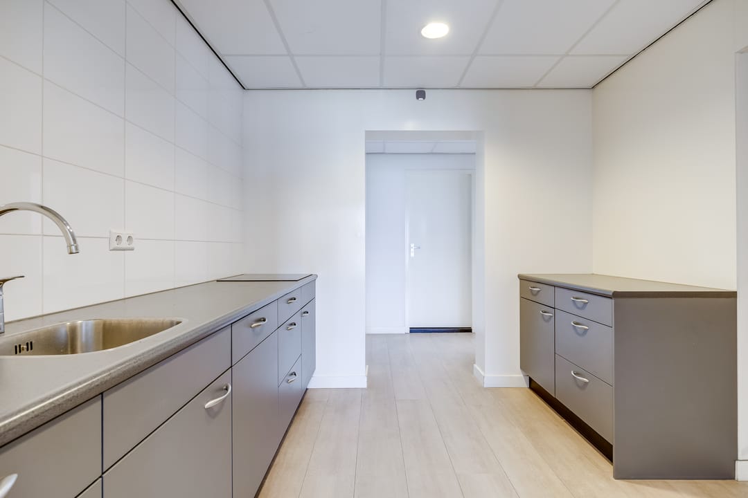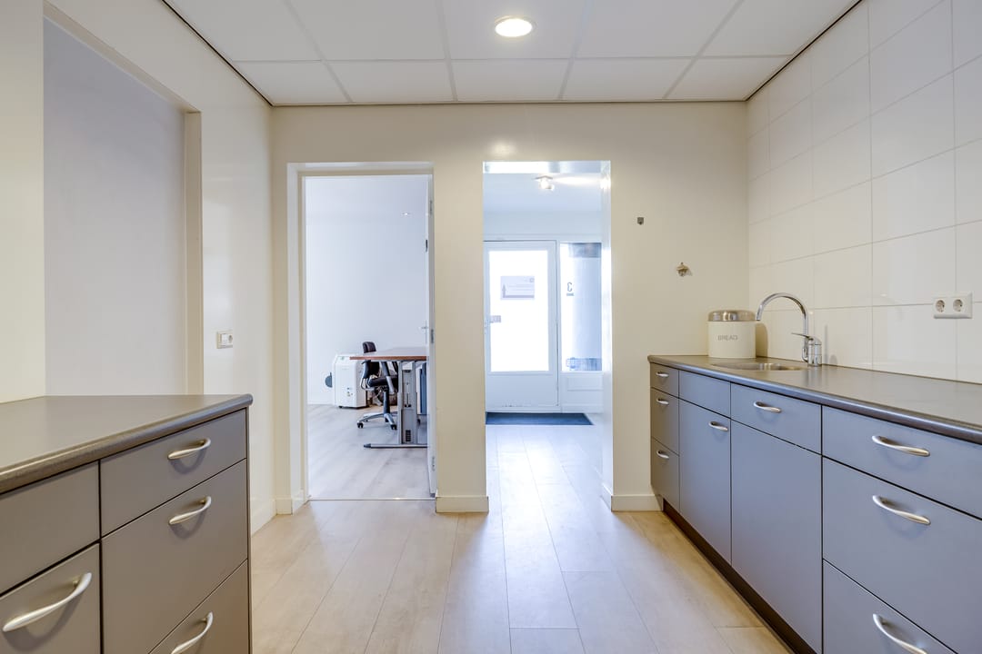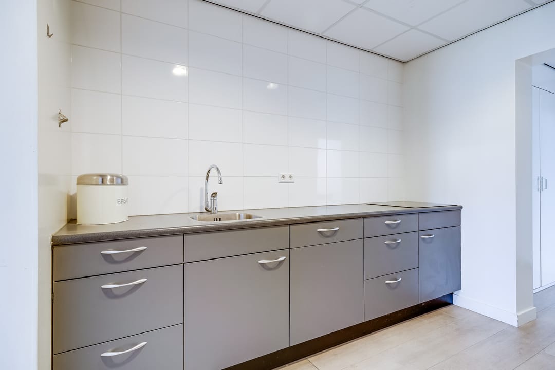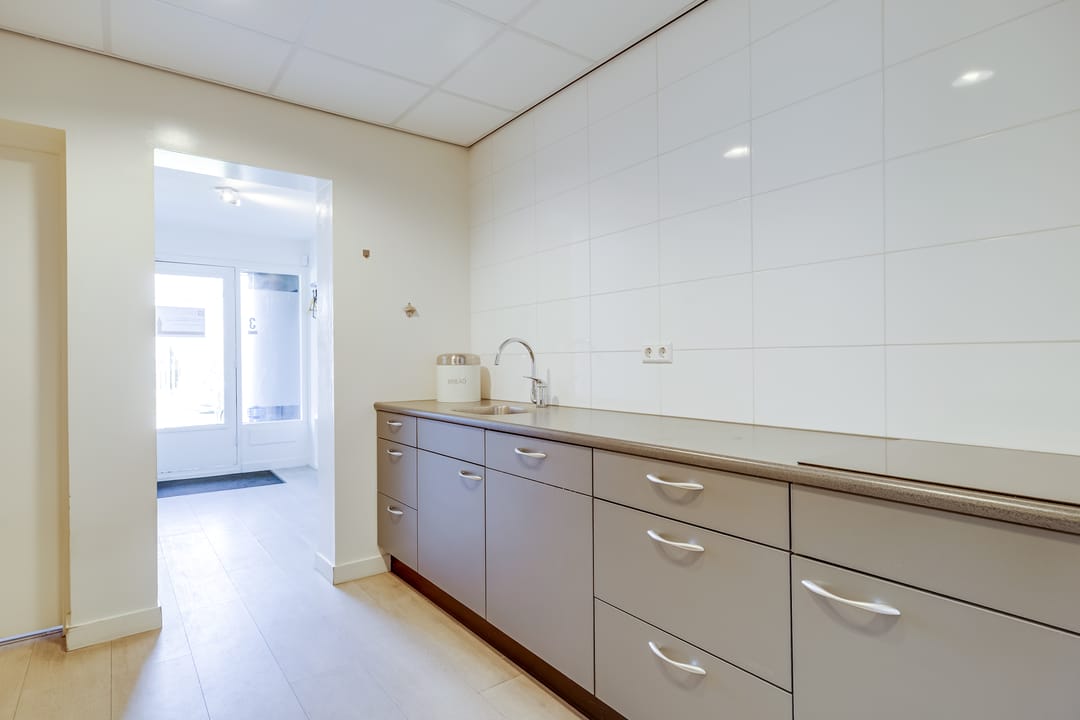 De kantoorruimte is voorzien van een riante keuken met vaatwasser, inductie kookplaat en veel kastruimte. De sanitaire ruimte is voorzien van een toilet en douche.