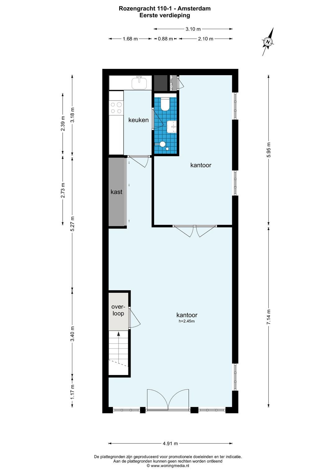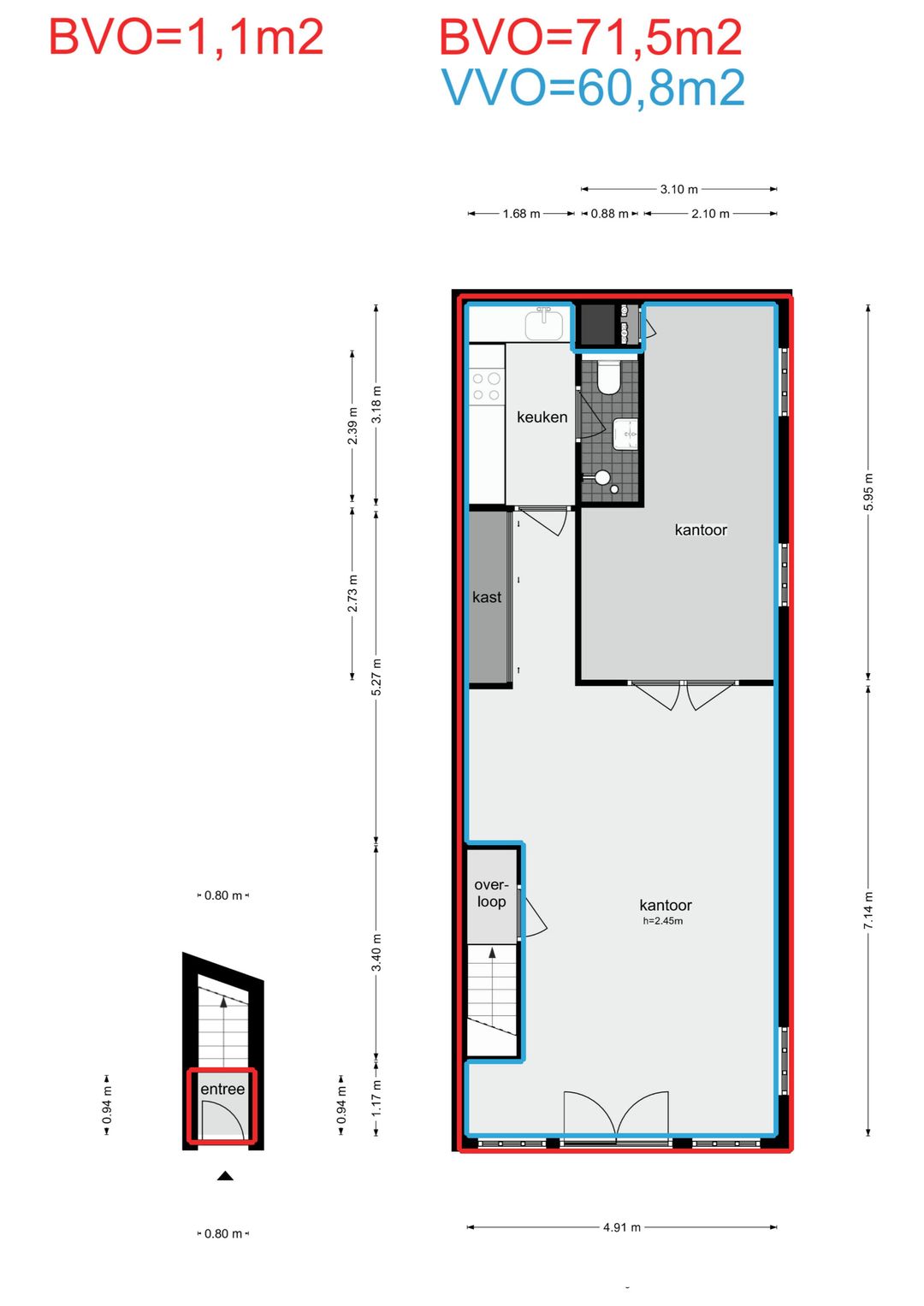 Het betreft ca. 61 m² verhuurbaar vloeroppervlakte V.V.O.