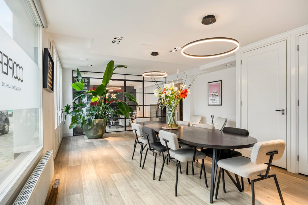Welkom aan de Tolstraat 130-134, een uitzonderlijke hoeklocatie voor jouw kantoor of onderneming. Deze ruime en instapklare kantoorruimte van circa 240 m² biedt een moderne en hoogwaardige afwerking, met onder meer een eikenhouten vloer, stijlvolle stalen binnen-puien, twee keukens met koelkast en vaatwasser en diverse prettige werk- en vergaderruimtes. De uitstraling van de ruimte is warm en professioneel en kan direct in gebruik worden genomen.