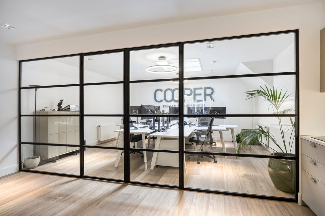 - Kamerindeling met stalen puien