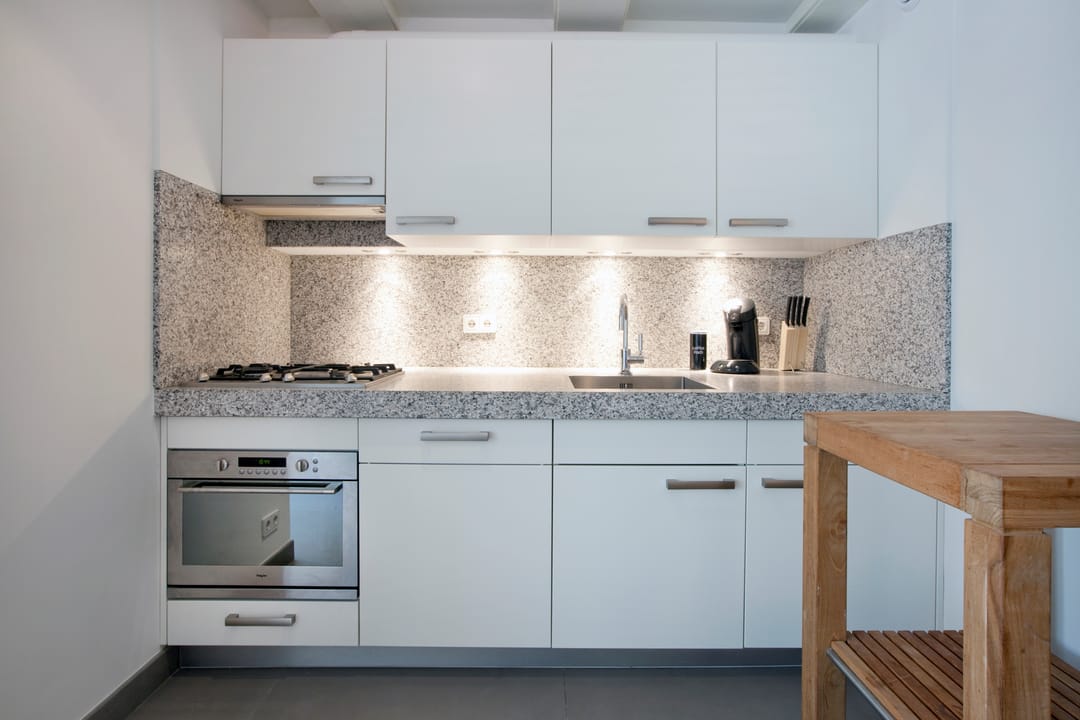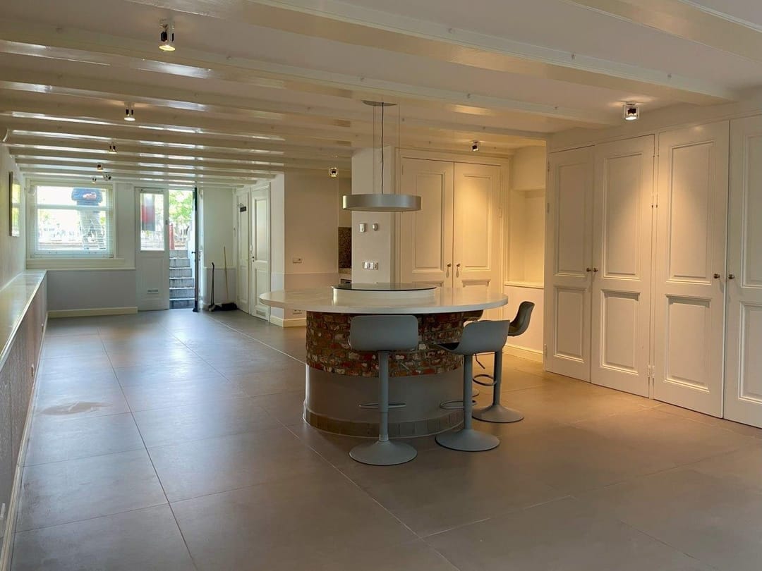 Bij binnenkomst van de ruimte komt u bij de volledig uitgevoerde keuken, voorzien van o.a. een vaatwasser, oven, koelkast en vriezer. In het middag van het monumentale pand bevind zich nog een eeuwen oude put, die is opgebouwd tot werktafel.