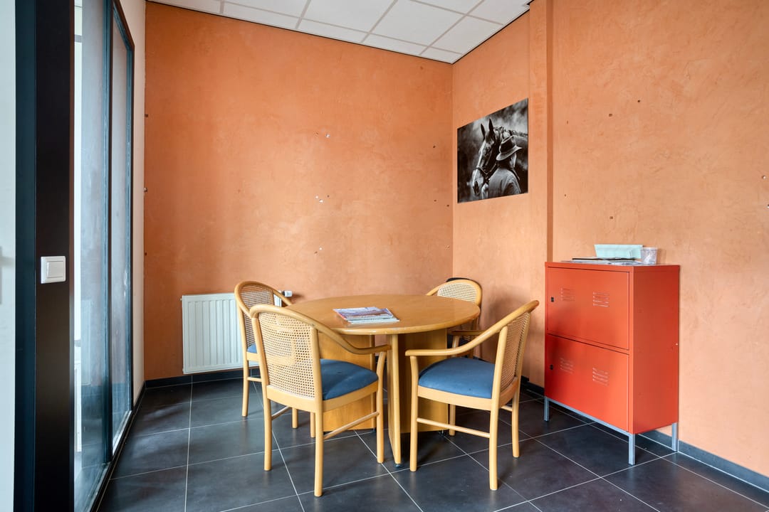 Hier is een kantoor-ontvangstruimte van ca. 20 m² en een eigen toilletgroep.