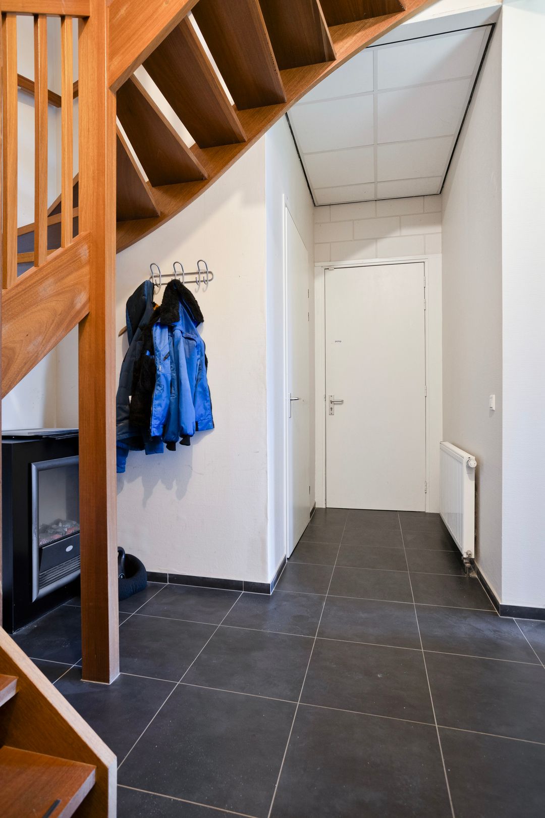 De verdieping is bereikbaar via een houten trap.