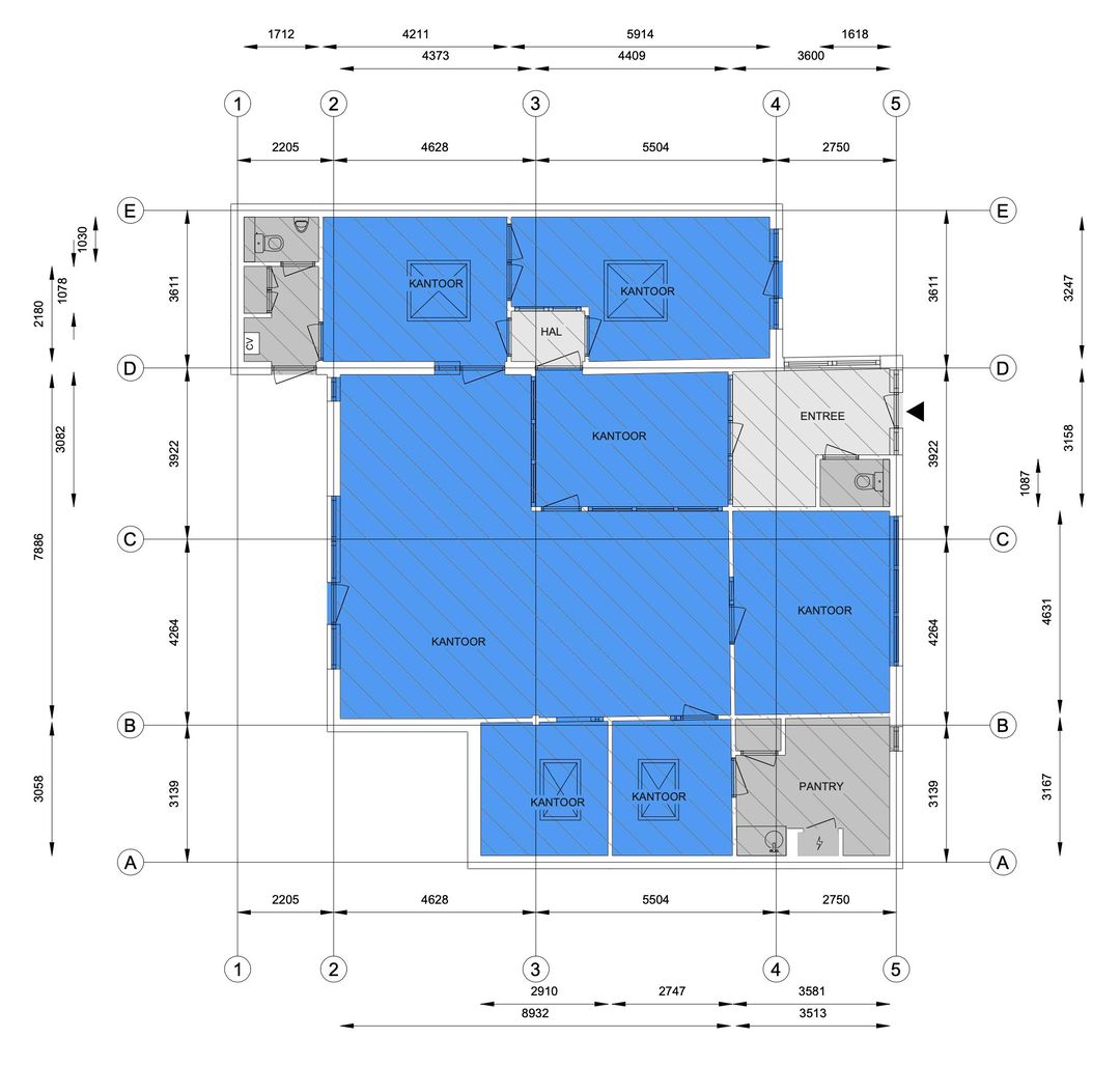 - Airconditioning, mechanische ventilatie, inbouwarmaturen, te openen ramen, kabelgoten, systeemplafond, toilet, pantry, verwarming en kamerindeling