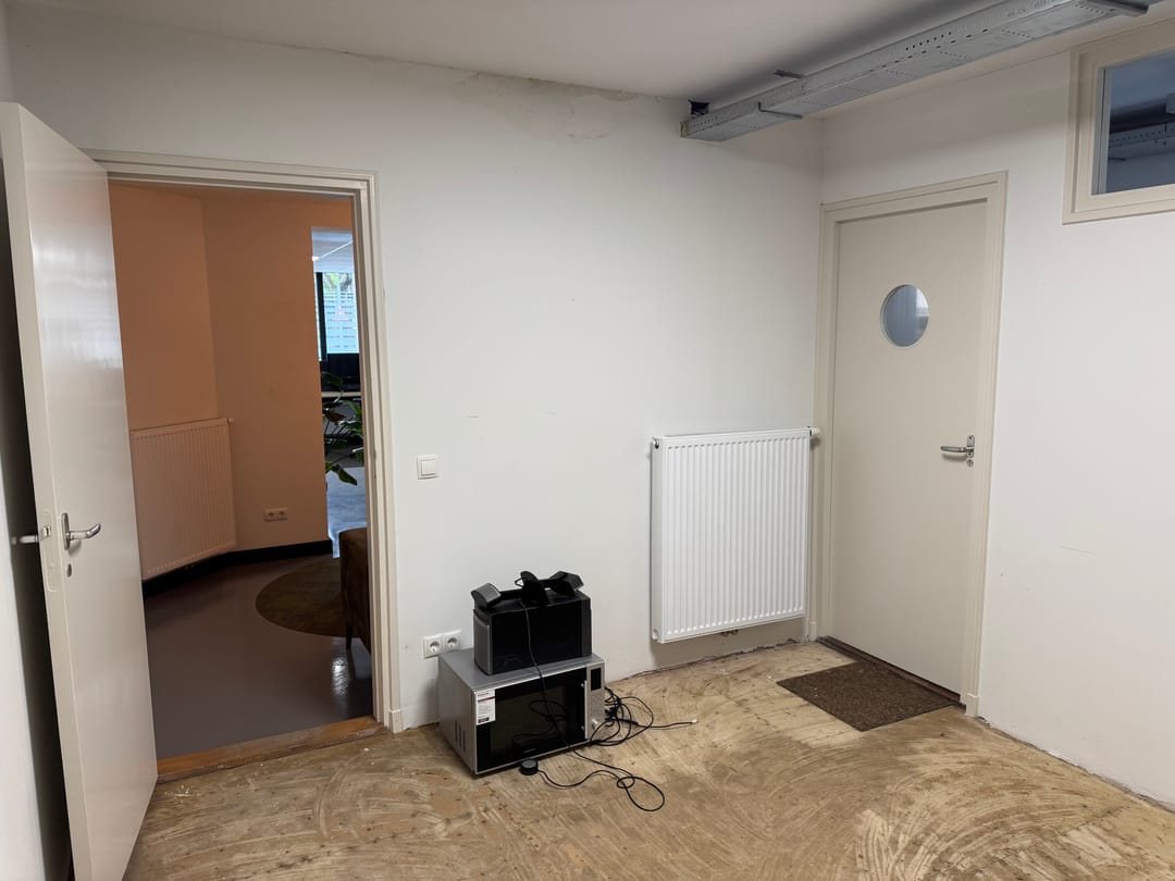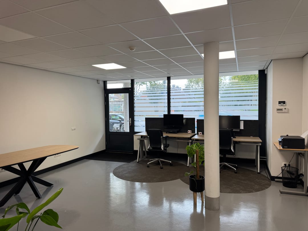 Via de entree aan de voorzijde is er toegang tot de kantoorruimte. De ruimte beschikt over een brede glazen gevel waardoor er veel daglicht binnenkomt. Aan de achterzijde van de ruimte is een afgezonderde keuken gelegen. Tot slot is er tevens een afgesloten ruimte aan de achterzijde van de kantoorruimte.
