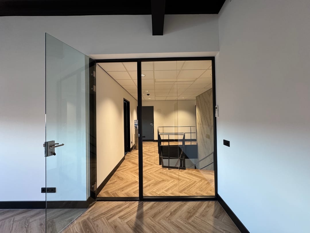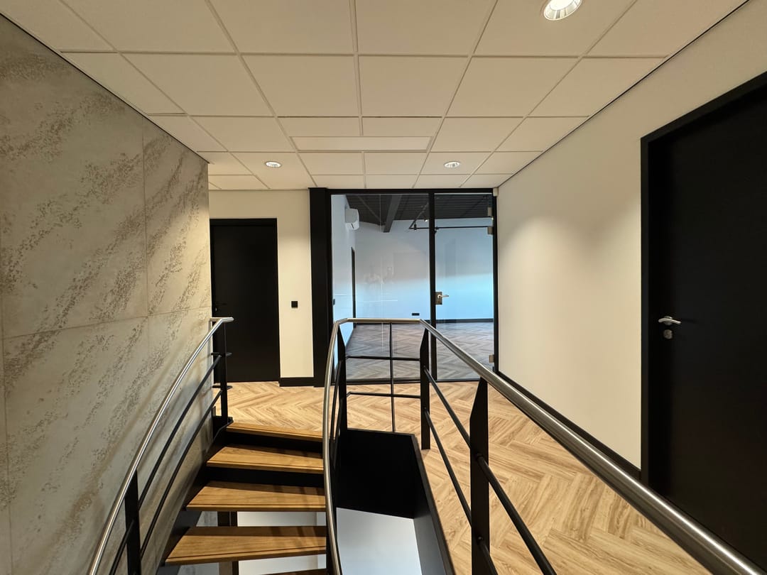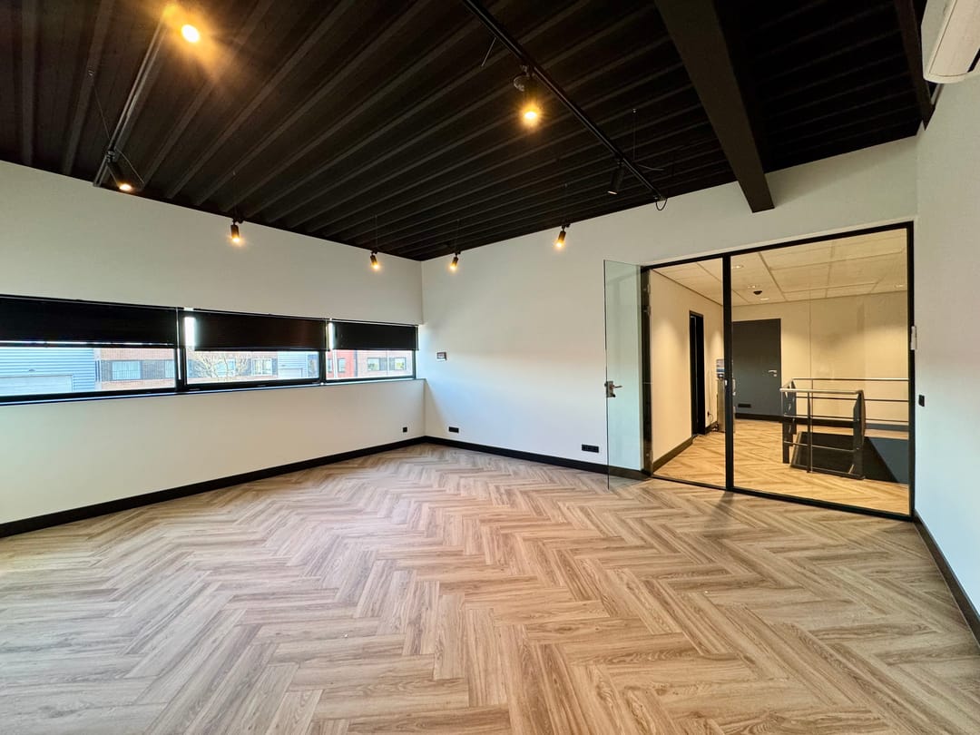 Zeer representatieve, moderne kantoorruimte met inpandige spreekkamer/vergaderruimte gelegen op de verdieping van een bedrijfspand, gelegen op bedrijventerrein De Sandeling, nabij de op- en afrit van rijksweg A16.