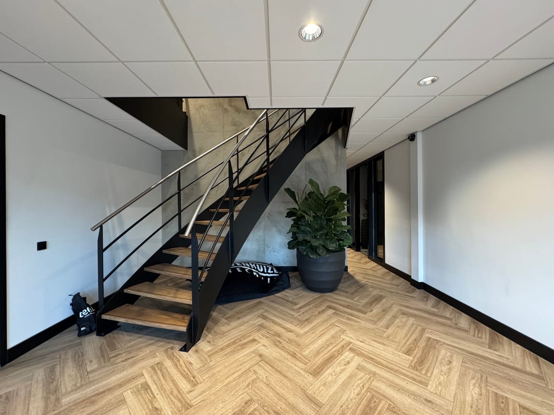 - representatieve gemeenschappelijke entree voorzien van pvc-vloerafwerking en trapopgang met hardhouten treden naar de verdieping;