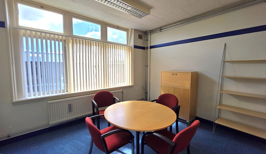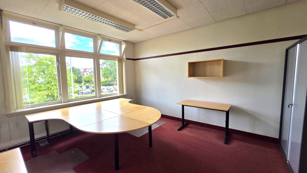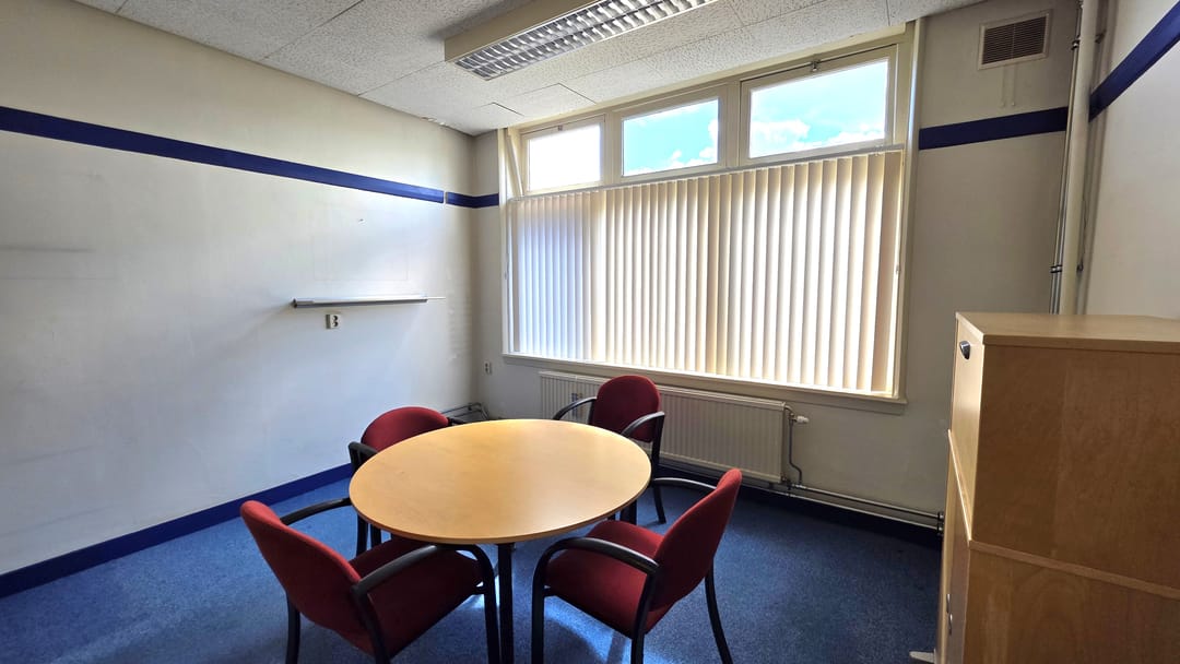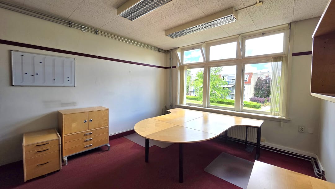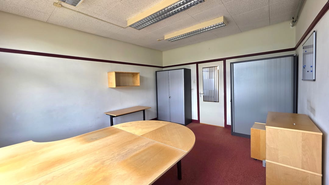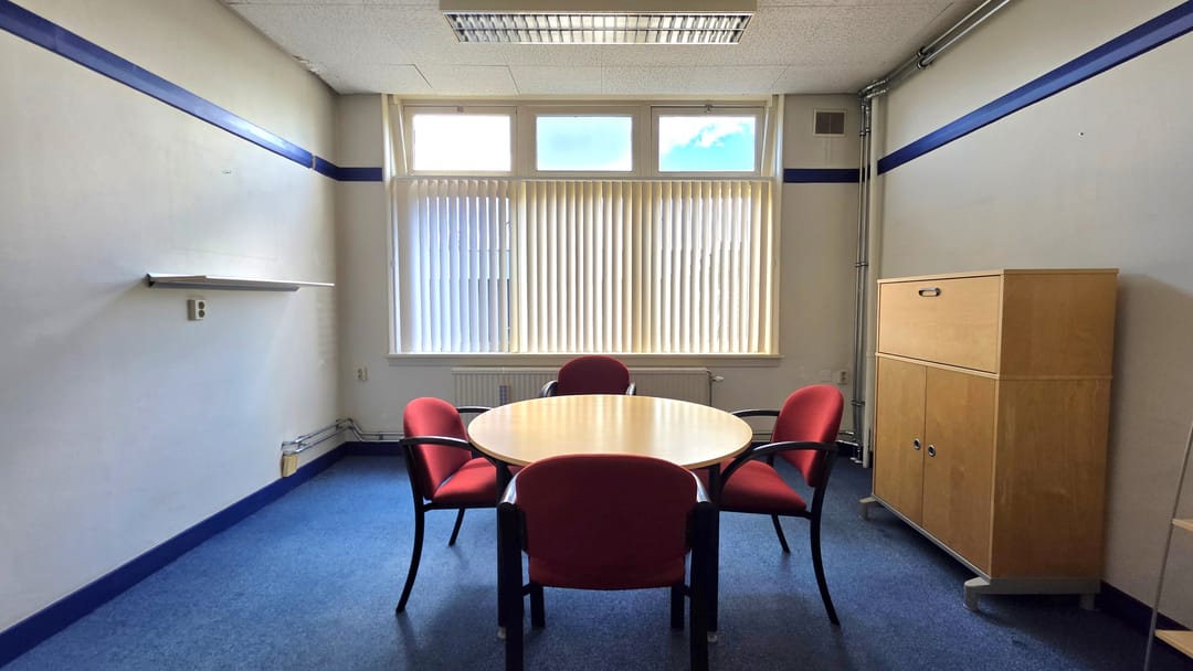 - kantoor 1 aan de voorzijde van het gebouw met afmetingen van 4 m x 4,60 m;