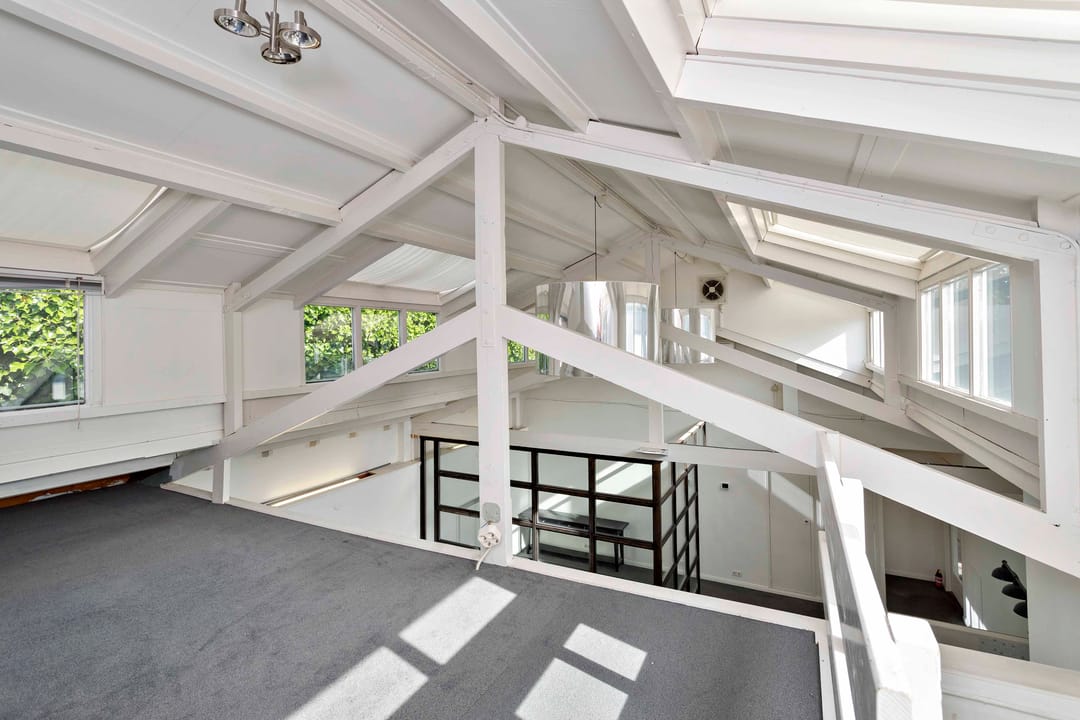 Dankzij de vele ramen beschikt het kantoor over een prettige, natuurlijke lichtinval. De ruimte is functioneel ingedeeld over twee verdiepingen en voorzien van een eigen pantry en toilet. Via een vaste trap bereikt u de verdieping, die in open verbinding staat met de ondergelegen ruimte en zich uitstekend leent voor het creëren van extra werkplekken of een rustige overlegplek.
