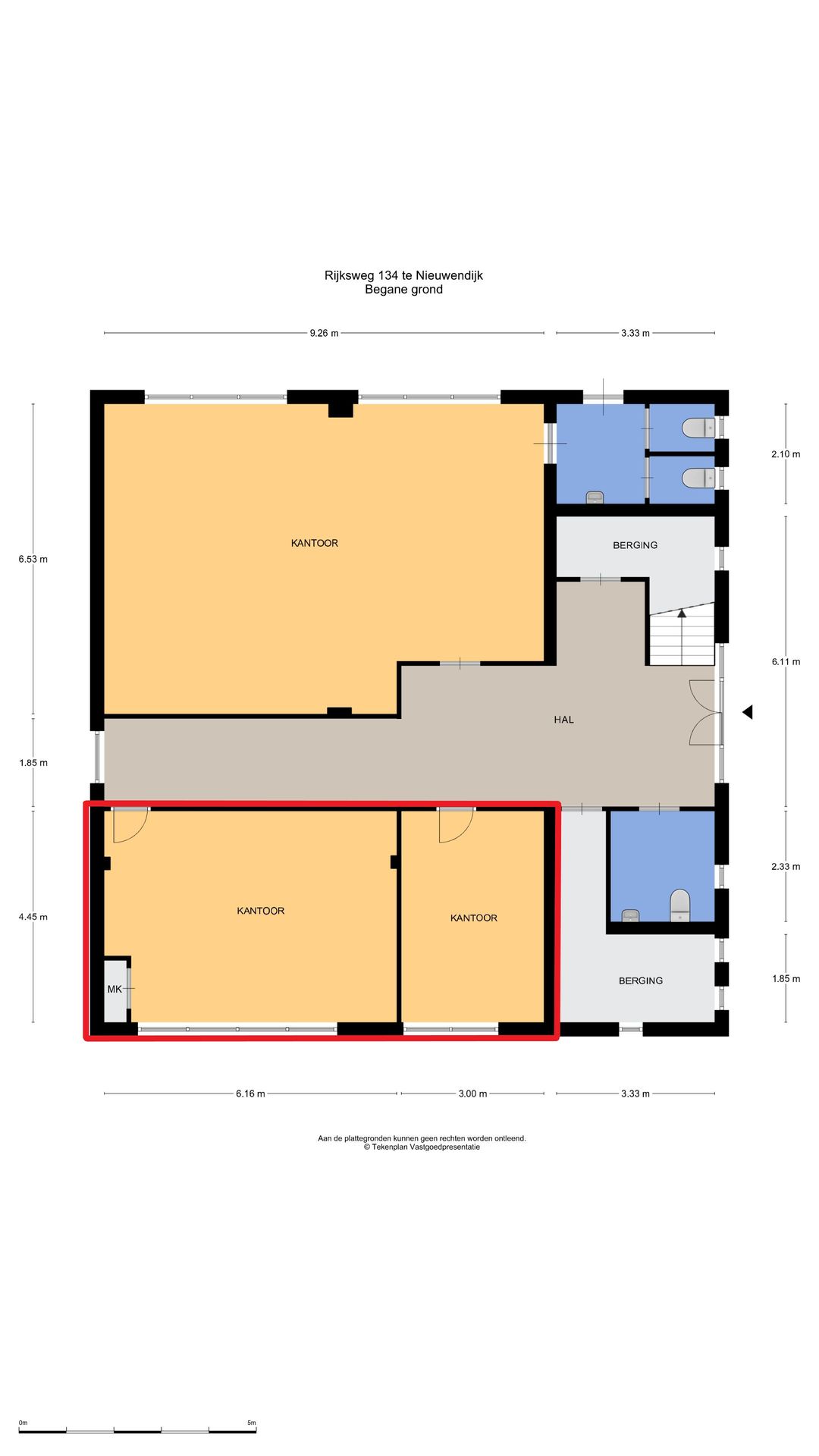 - Kantoorruimte (rechts): 23 m²