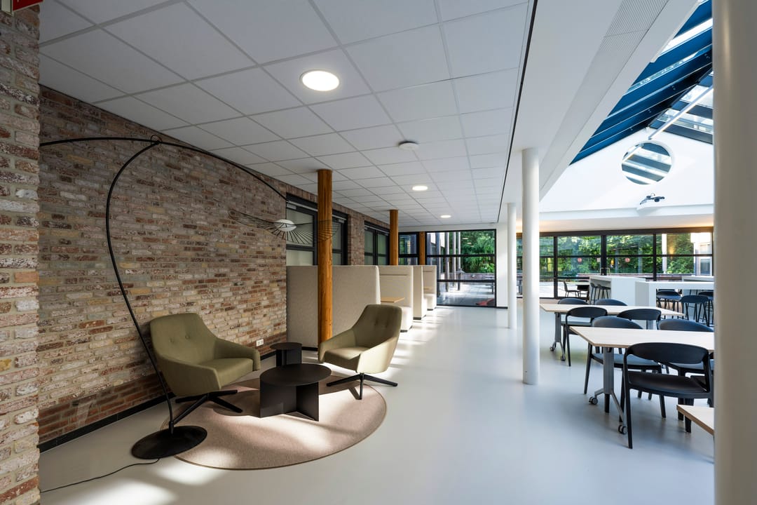 - Mechanische ventilatie, topkoeling, liften, te openen ramen, kabelgoten, systeemplafond, toilet, pantry en verwarming