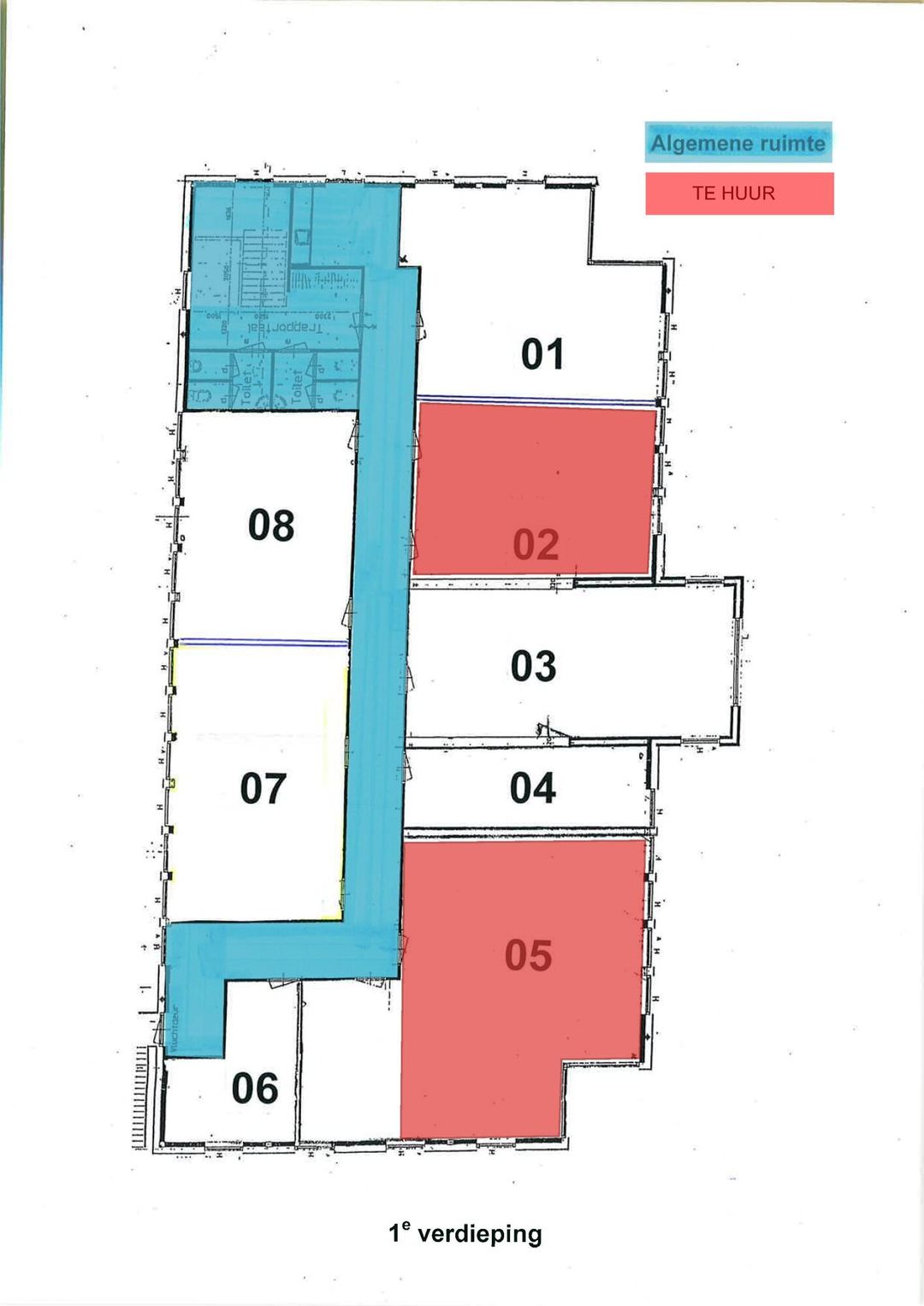 Kamer 3 + 4 - oppervlakte 90 m² gelegen op 1e verdieping-VERHUURD