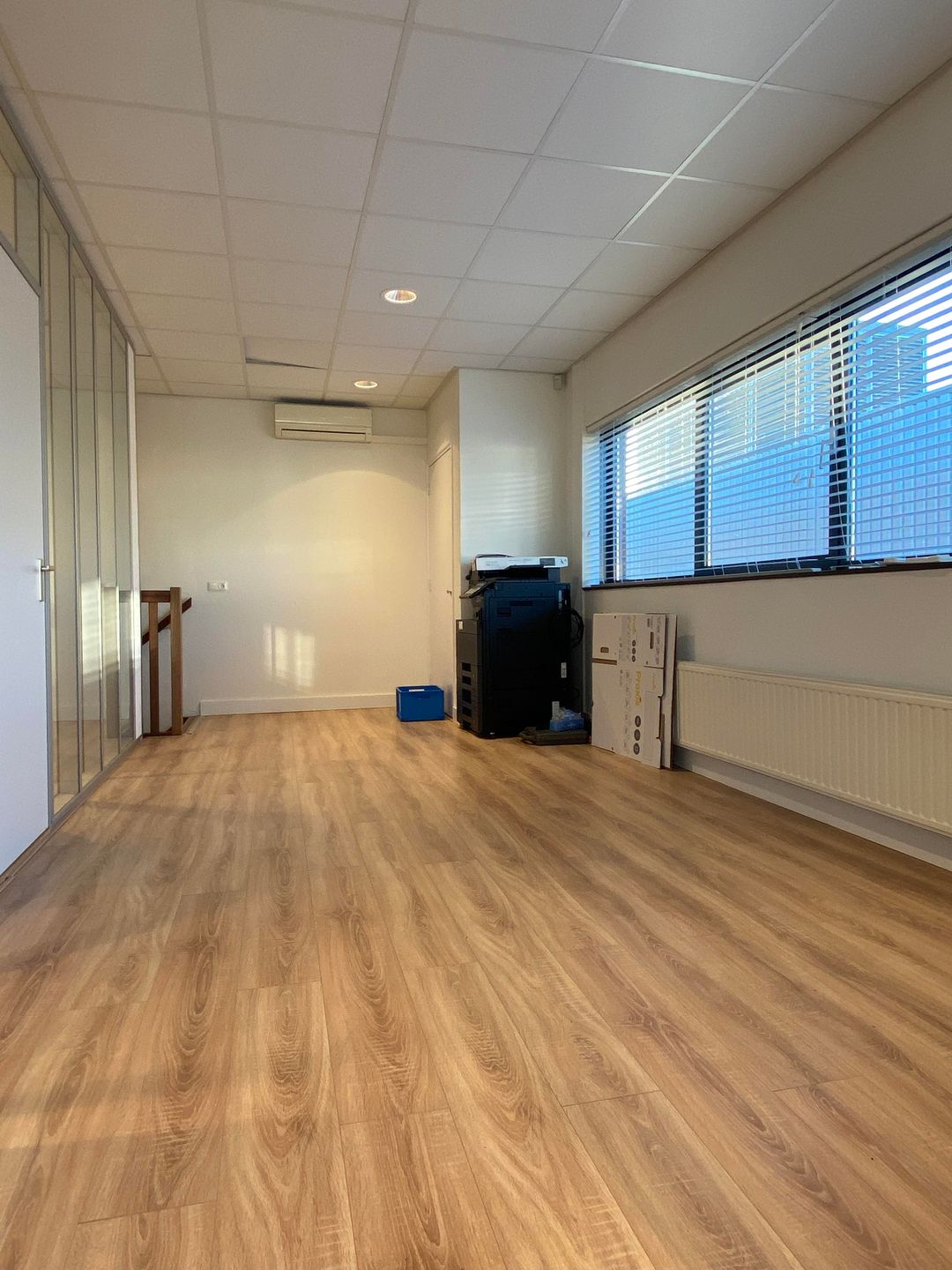 - Airconditioning, inbouwarmaturen, te openen ramen, kabelgoten, systeemplafond, toilet, pantry, verwarming en kamerindeling