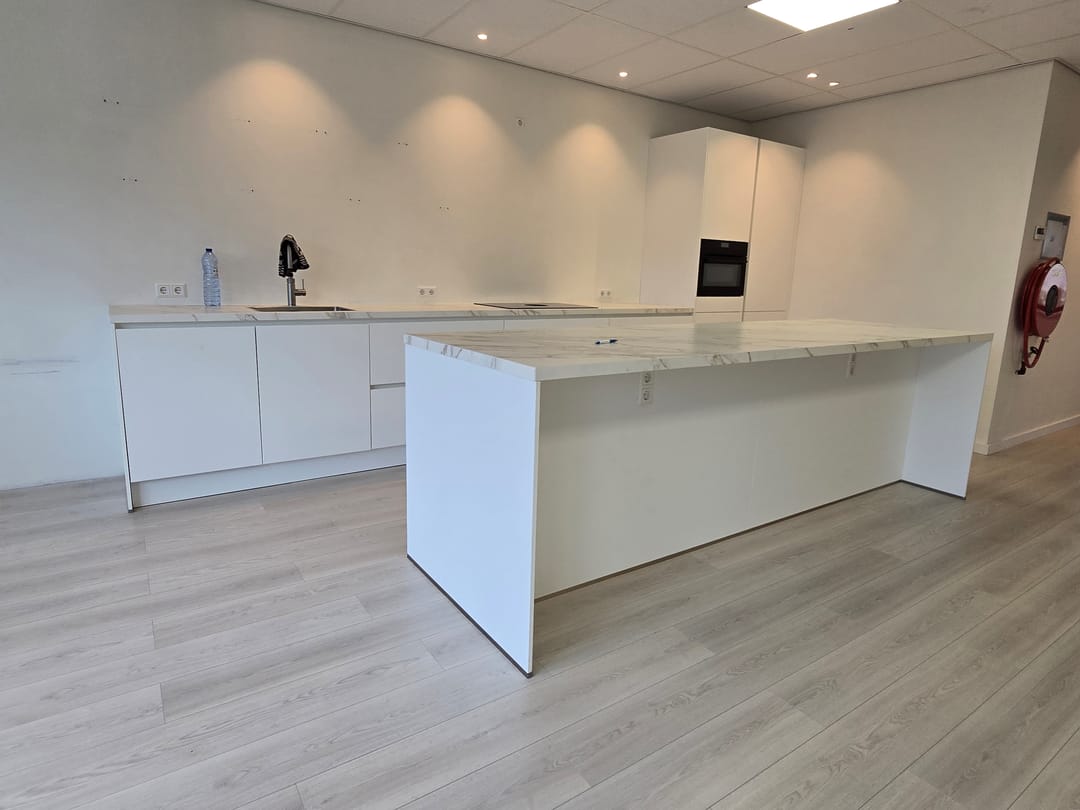 • Nieuwe luxe keuken voorzien van inbouwapparatuur, bestaande uit koel-/vriescombinatie,