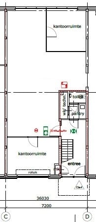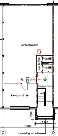 - Mechanische ventilatie, inbouwarmaturen, te openen ramen, kabelgoten, systeemplafond, toilet, pantry, verwarming en kamerindeling