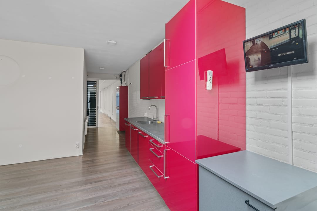 • Keuken/kantine met ruim keukenblok, spoelbak, koelkast én dakraam