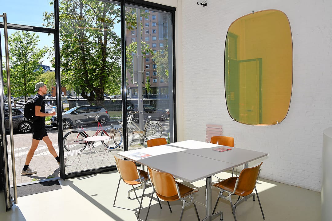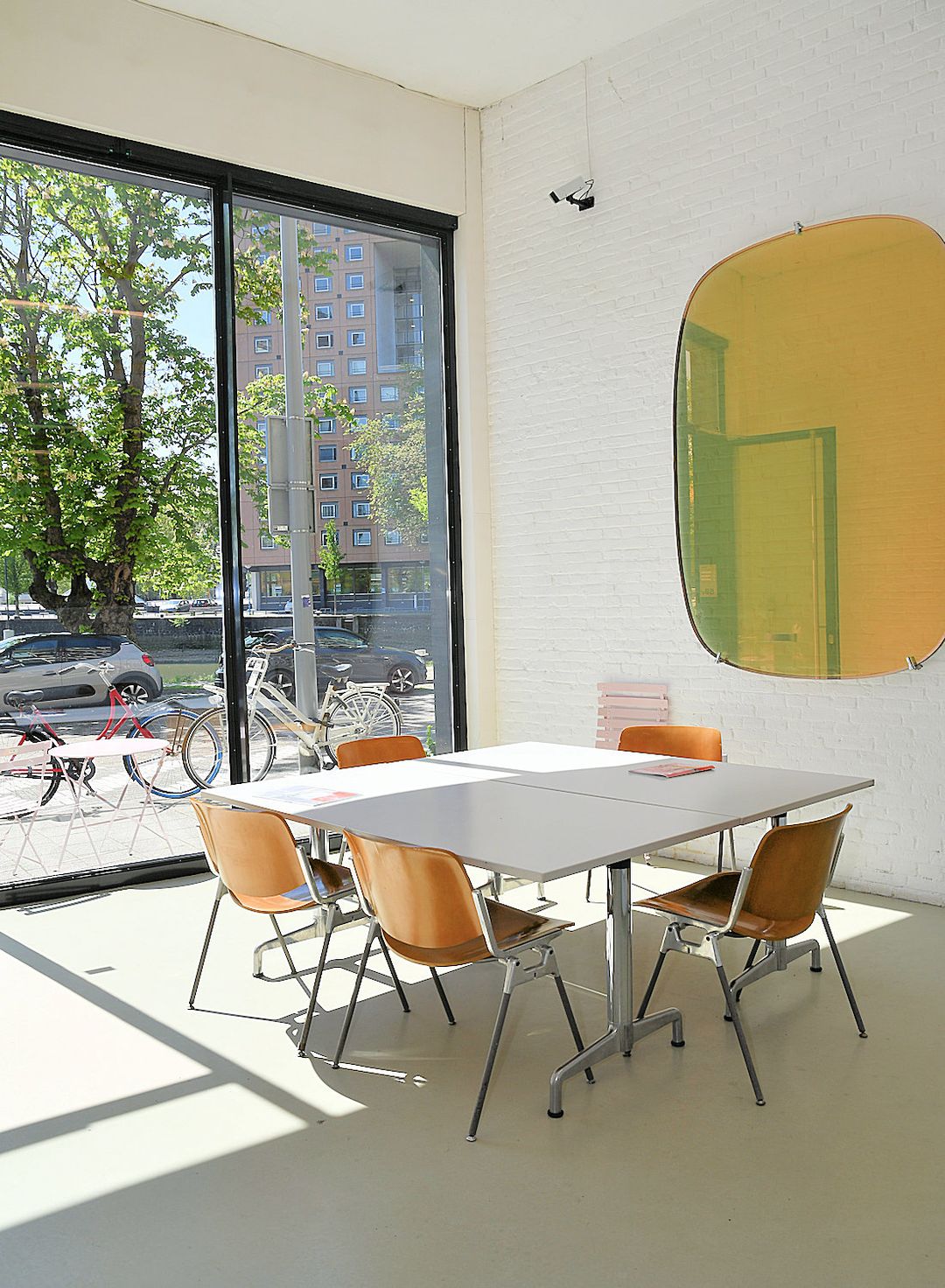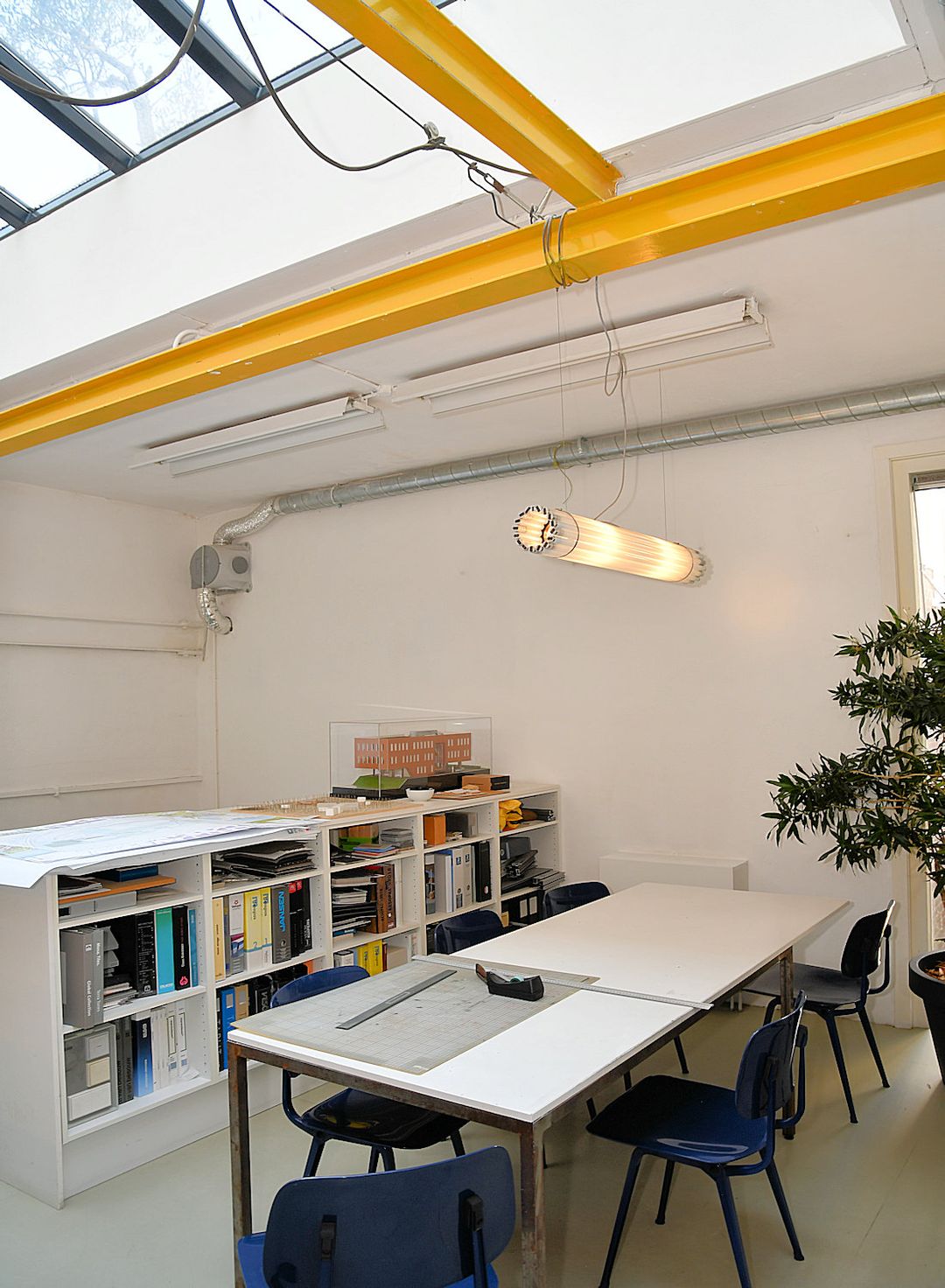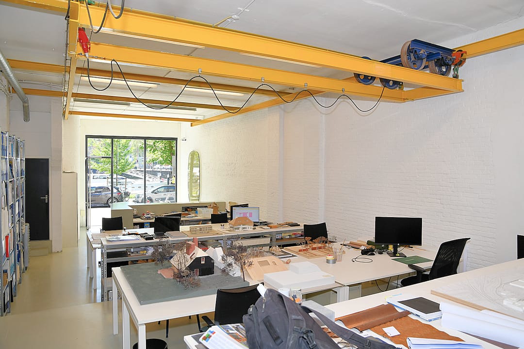 Door het aanbrengen van 4 verschillende vloerniveau's is er een speelse werkruimte ontstaan, waarbij iedereen goed uitzicht heeft naar de voorgevel.