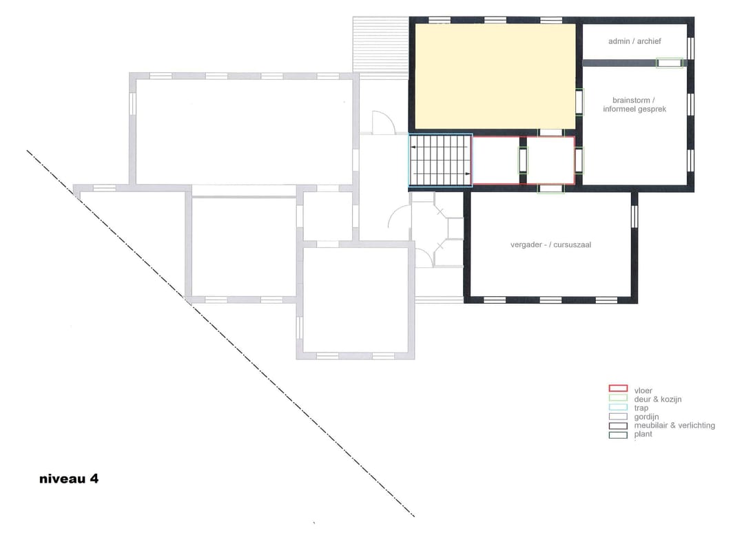 Beschikbaar is nog slechts 1 kantoorkamer met een oppervlakte van ca. 45,3 m² verhuurbaar vloeroppervlak per kamer.