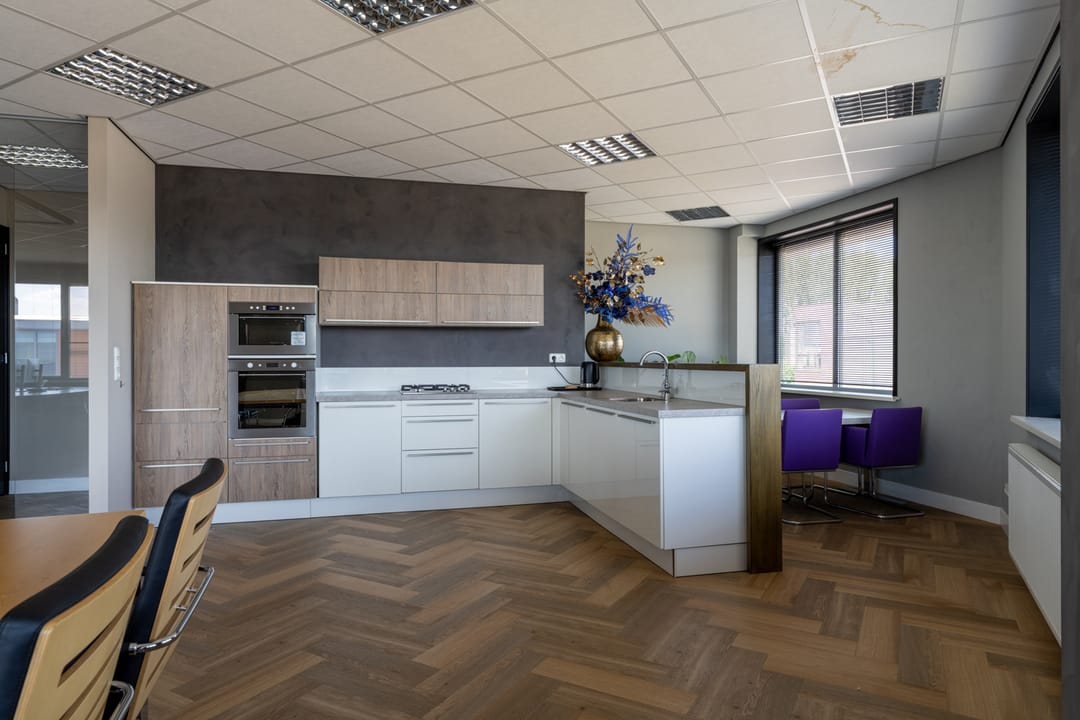- Te openen ramen, kabelgoten, systeemplafond, toilet, pantry en verwarming