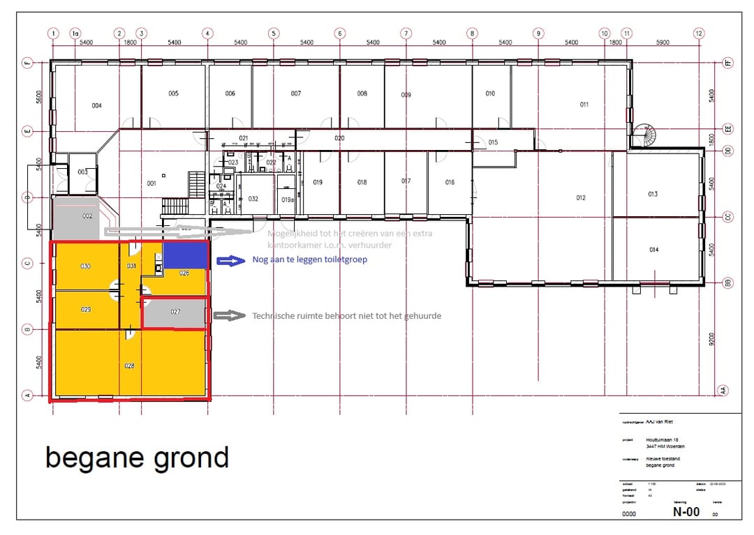 - Mechanische ventilatie, topkoeling, inbouwarmaturen, te openen ramen, kabelgoten, systeemplafond, toilet, pantry, verwarming en kamerindeling