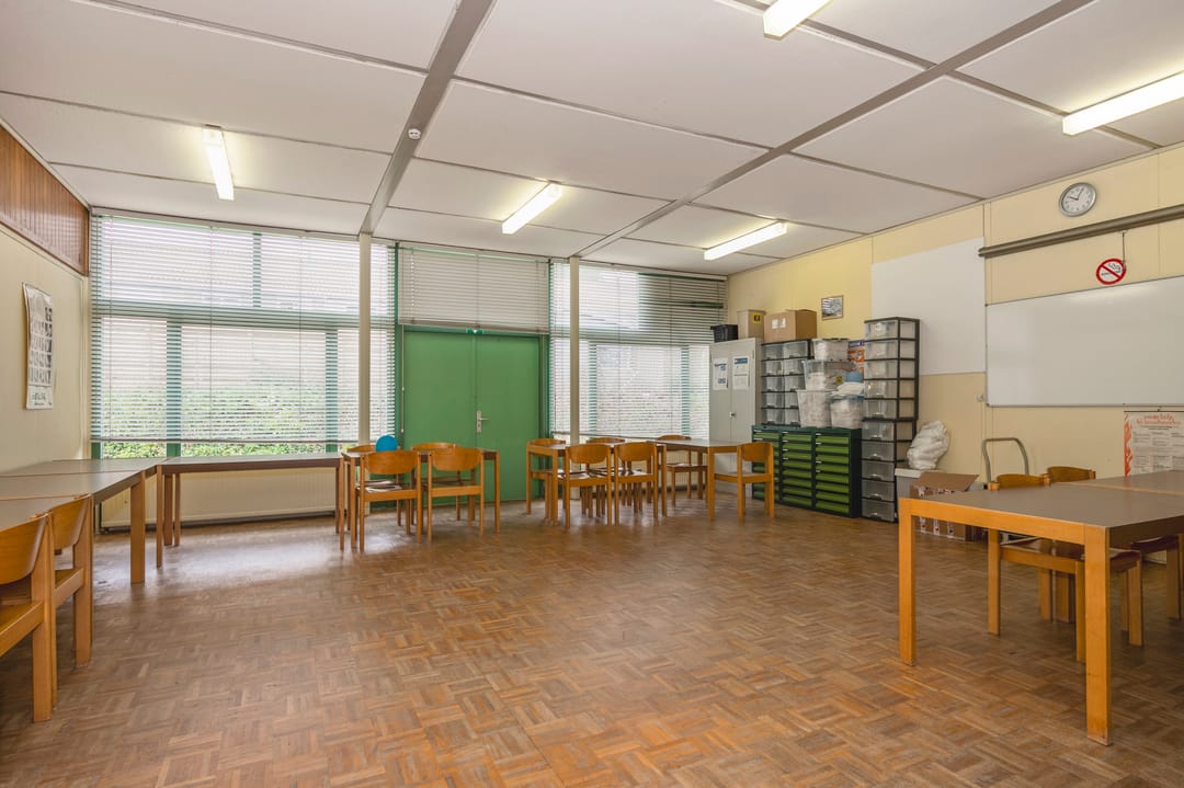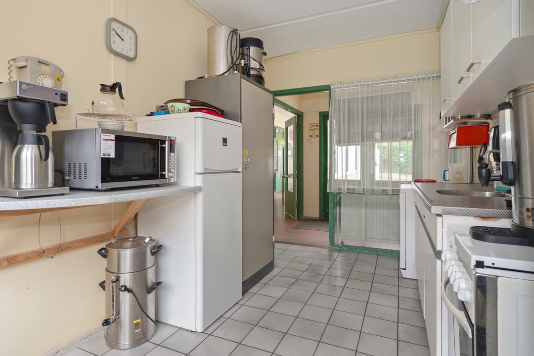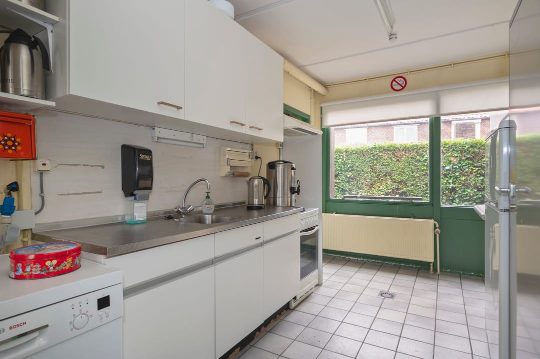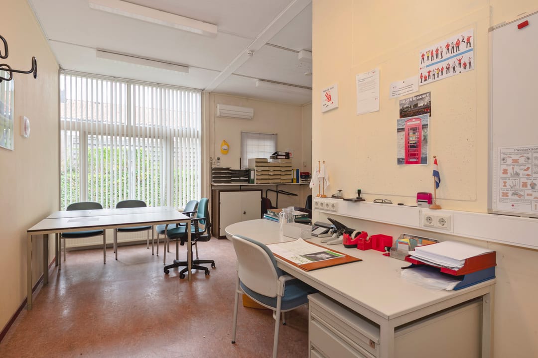 Namens onze opdrachtgever bieden wij dit kantoorgebouw met maatschappelijke bestemming in Oud-Geleen aan. Dit vrijstaande object (voormalige kleuterschool) bestaat uit ca. 475 m² vloeroppervlakte waarvan 55 m² toekomt aan de ruime garage. De kantoorruimte bestaat uit een multifunctionele ruimte (108 m²) en 4 separate kantoorruimtes (variërend van ca. 30 m² t/m 55 m²). Verder beschikt het pand over een keuken, toiletruimtes (mindervalide) en opslagruimtes. Het object wordt verwarmd middels een CV-installatie (eigendom) op gas. Het totale perceel bedraagt 1.655 m². Er zijn voldoende parkeerplaatsen aanwezig op het eigen terrein.