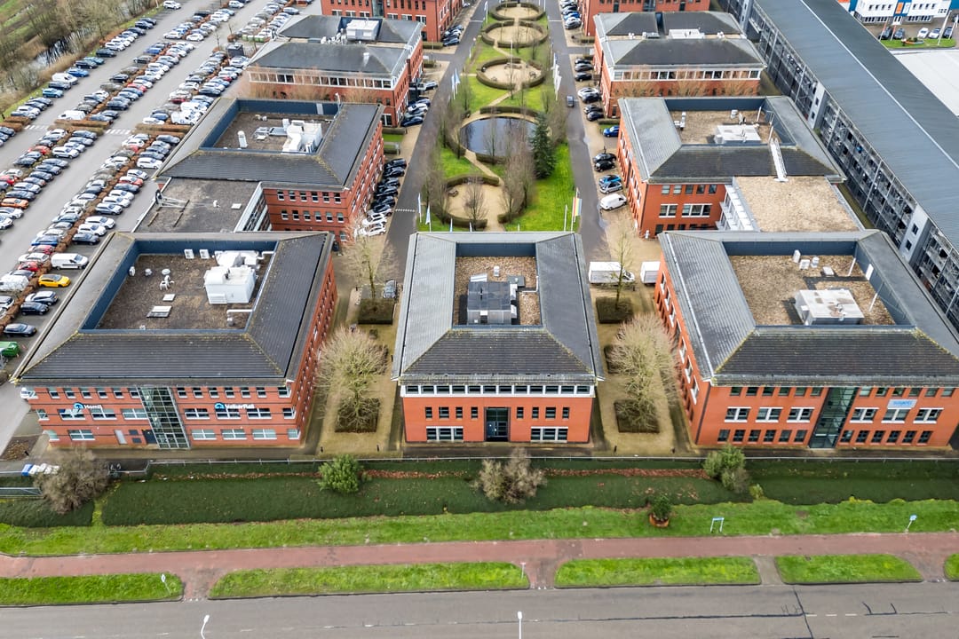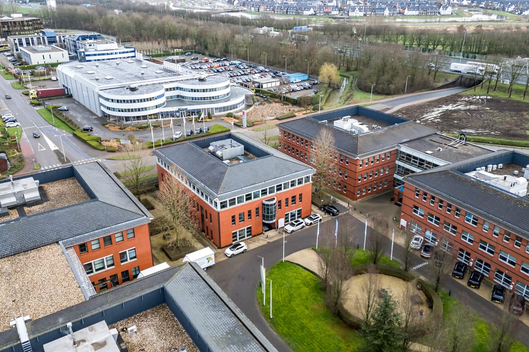 In het kantoorgebouw aan de Lange Dreef 19, zichtbaar vanaf de toegangsweg Lange Dreef.