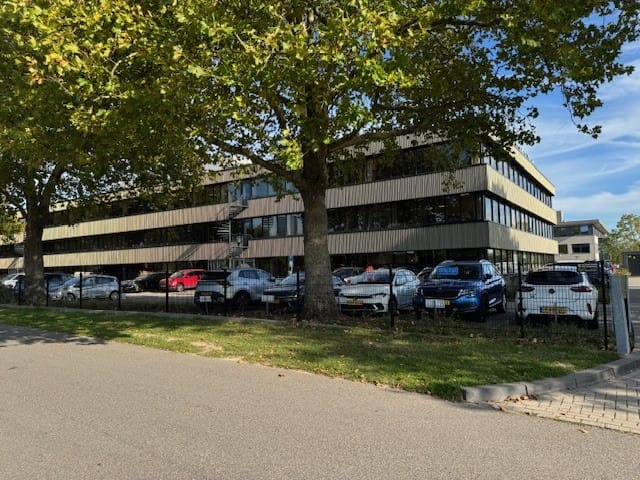Naast het gebouw ligt een ruim omsloten parkeerterrein waar bezoekers gratis de auto kunnen parkeren.