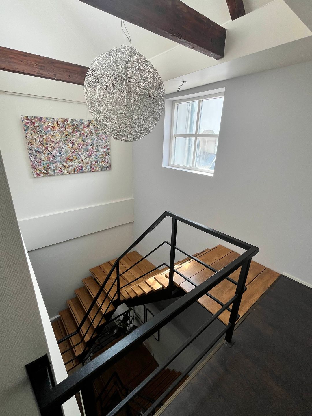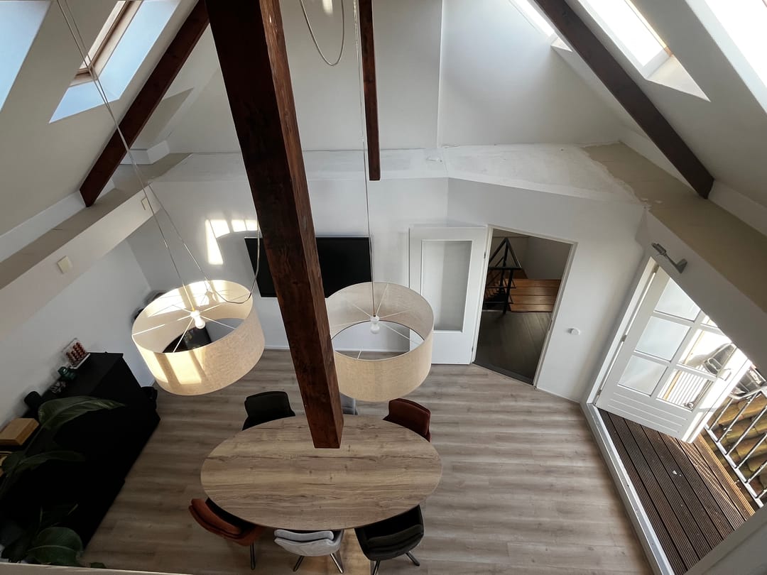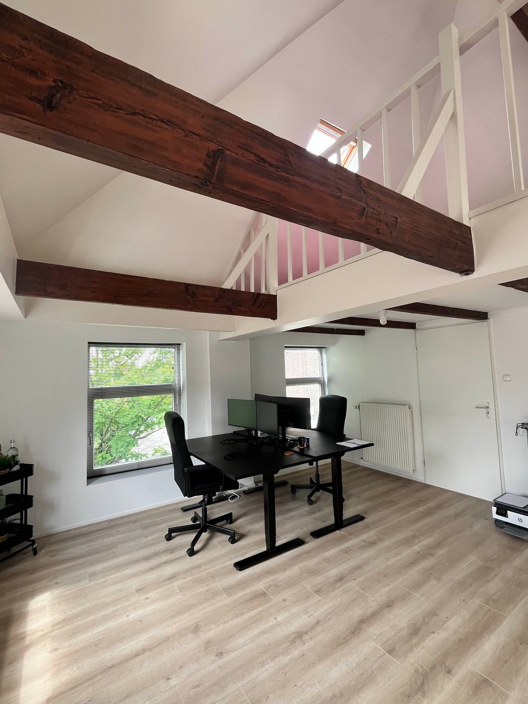 Te Huur op de 2e verdieping werkruimte van ca 52 m2 met veel licht inval, berging van ca 7 m2, entresol van 13 m2, loggia met openslaande deuren. Geheel voorzien van dubbel glas, geïsoleerd dak en muren afgewerkt met laminaatvloeren.