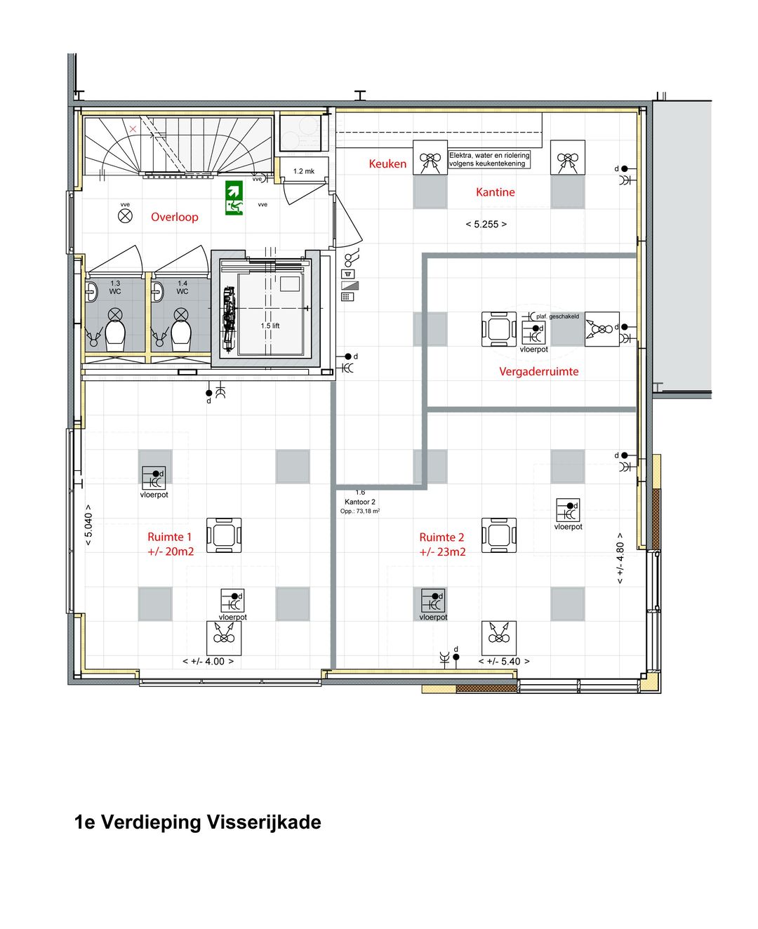 De genoemde 100 m2 per bouwlaag is inclusief de sanitaire ruimte (eigen gebruik), lift (gemeenschappelijk gebruik), entree / hal met trap (gemeenschappelijk gebruik), meterkast (eigen gebruik) en technische ruimte (gemeenschappelijk gebruik). De oppervlakte van de kantoorruimte per bouwlaag is ongeveer 74 m2 en is geschikt voor maximaal 8 personen.