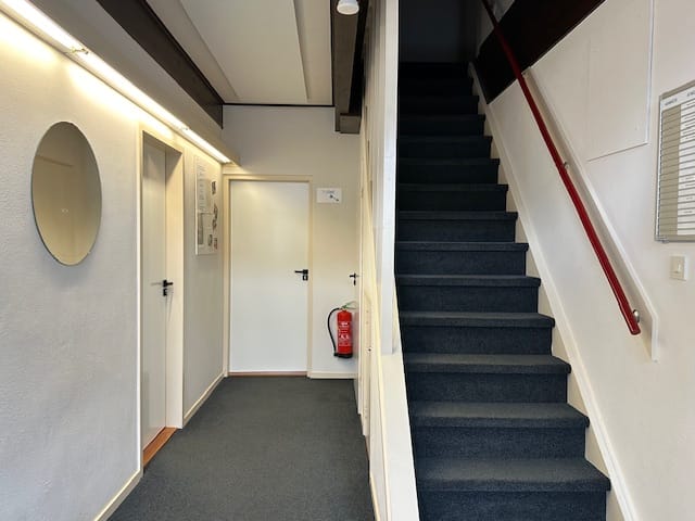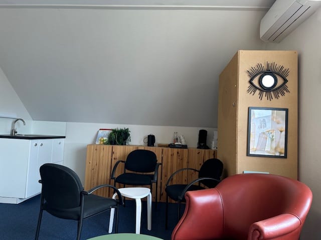 De kamer bevindt zich op de eerste verdieping van deze vrijstaande villa, waarin onder meer zijn gevestigd een manueel arts, praktijk voor acupunctuur en een kindercoach.