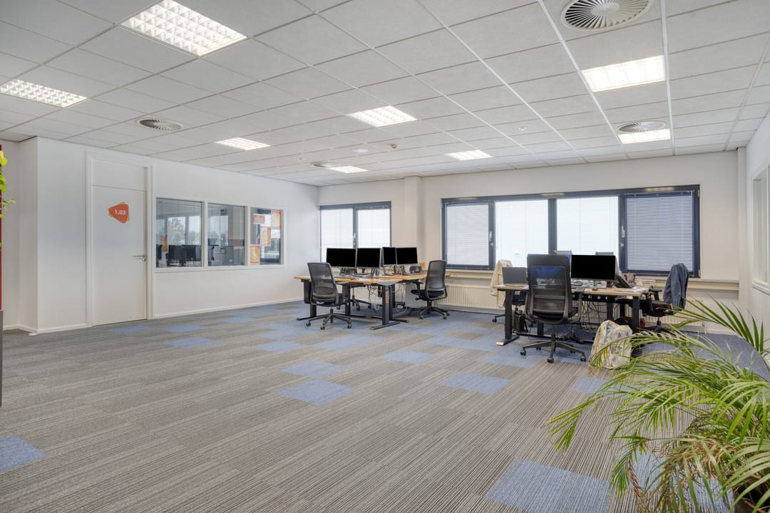 - Airconditioning, inbouwarmaturen, te openen ramen, kabelgoten, systeemplafond, toilet, pantry, verwarming en kamerindeling