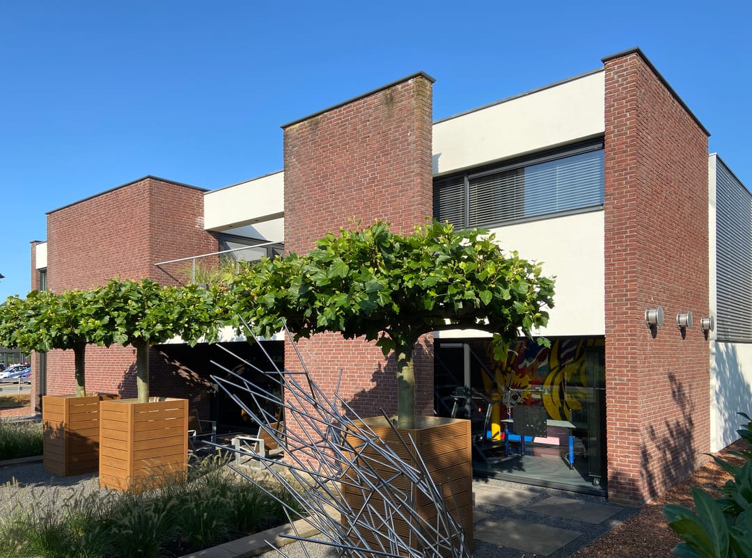 Nu eens niet in opdracht voor een klant maar voor je eigen gezin een pand ontwerpen waar wonen en werken onder 1 dak plaatsvindt. Dat was begin 2001 het uitgangspunt en in maart 2002 werkelijkheid toen wij dit unieke pand betrokken. Als liefhebber van minimalistische architectuur moest het iets bijzonders worden. Een plek waar wonen en werken samen komen maar ook weer door 1 deur van elkaar gescheiden konden worden. Geen woning met een naastgelegen bedrijfshal maar een op zichzelf staand gebouw met de uitstraling van een moderne villa. Dat is volgens ons gelukt en daar zijn wij nog steeds erg trots op.