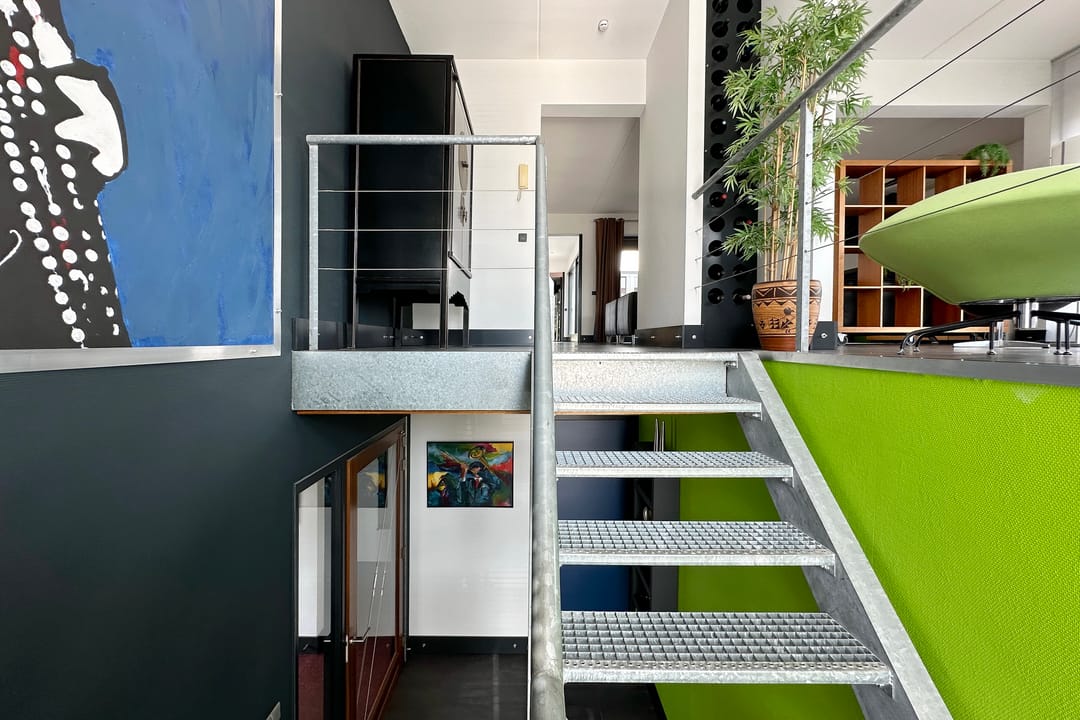 - stalen trap 1e verdieping;