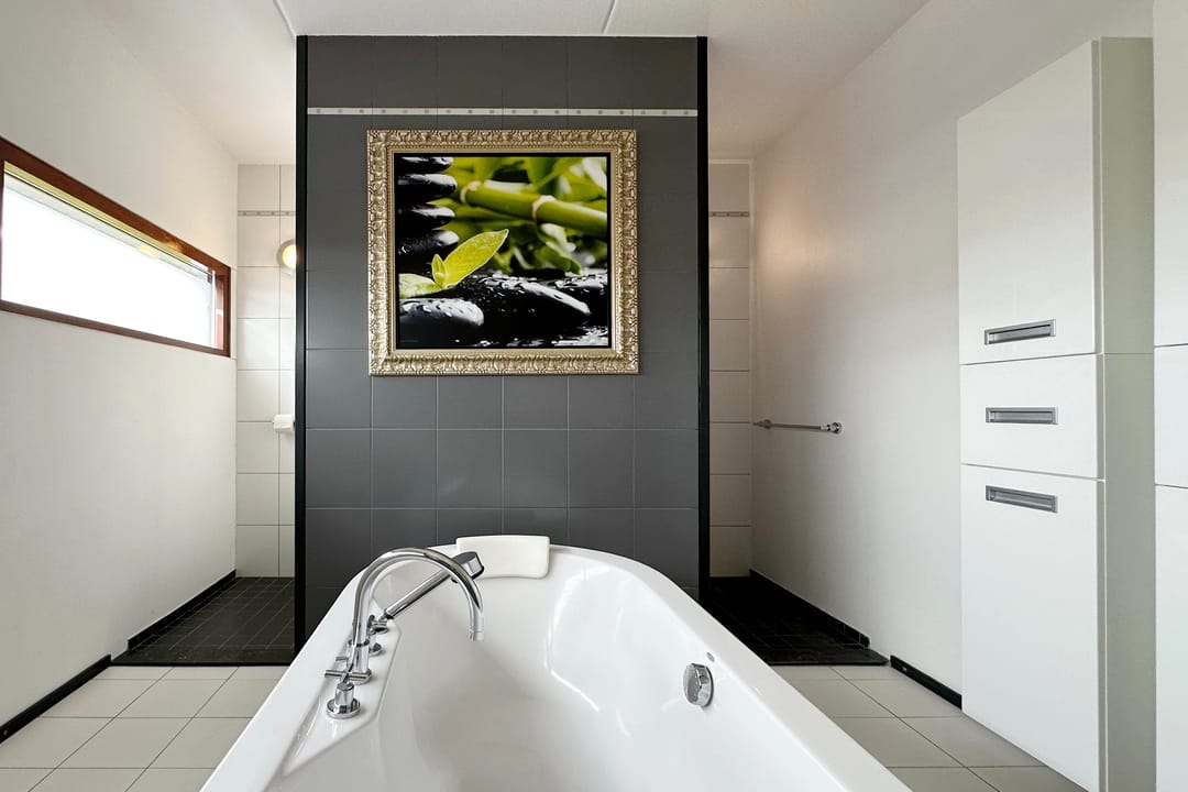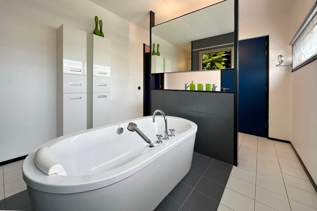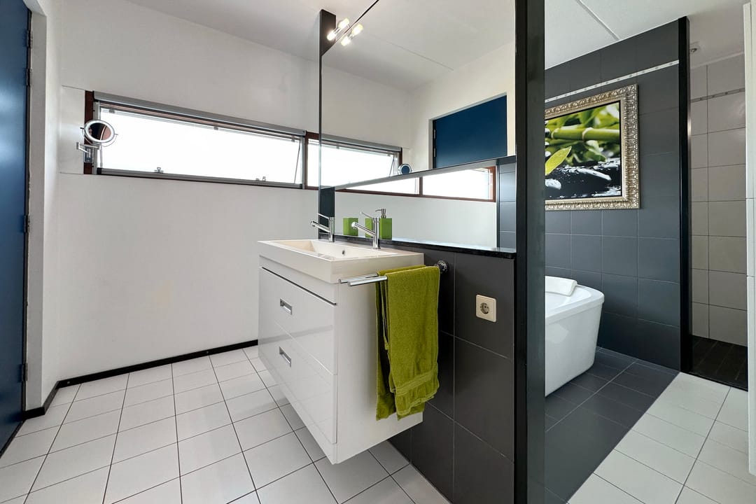 - badkamer met bad, wastafelmeubel, 2e toilet en douche;