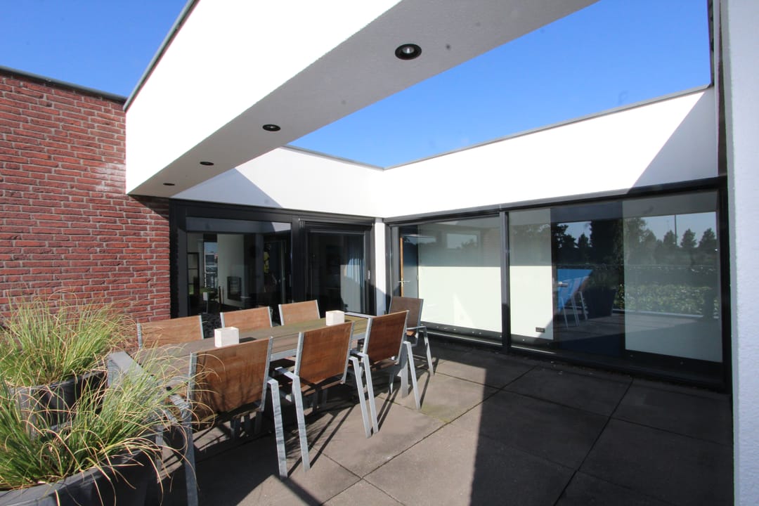 Zowel de multifunctionele bedrijfsruimte als het woongedeelte beschikken over een zelfstandige entree en bieden genoeg ruimte om verschillende bedrijfsactiviteiten uit te voeren en comfortabel te wonen en te leven. Het woongedeelte, van 186 m2, is gesitueerd op de eerste verdieping en wordt daarom een appartement genoemd. Dit doet qua ruimte en comfort niet onder voor een penthouse of grote eengezinswoning. De woning is verrassend ingedeeld met een ruime living, een prachtige keuken, een royale bijkeuken met veel bergruimte, 2 grote slaapkamers waarvan 1 met een walk-in closet, 1 kleinere slaapkamer die momenteel in gebruik is als walk-in closet en een badkamer met vrijstaand ligbad. Vanuit de woonkamer en de master bedroom stapt u zo het terras van 26 m2 op. Daar kunt u met mooi weer heerlijk van uw maaltijd genieten en vanaf het terras loopt u via de buitentrap direct de tuin in.