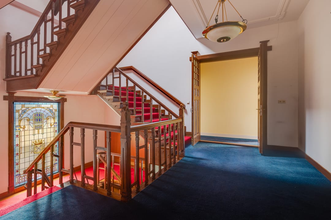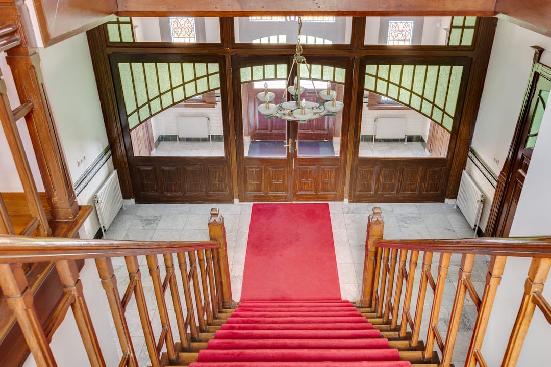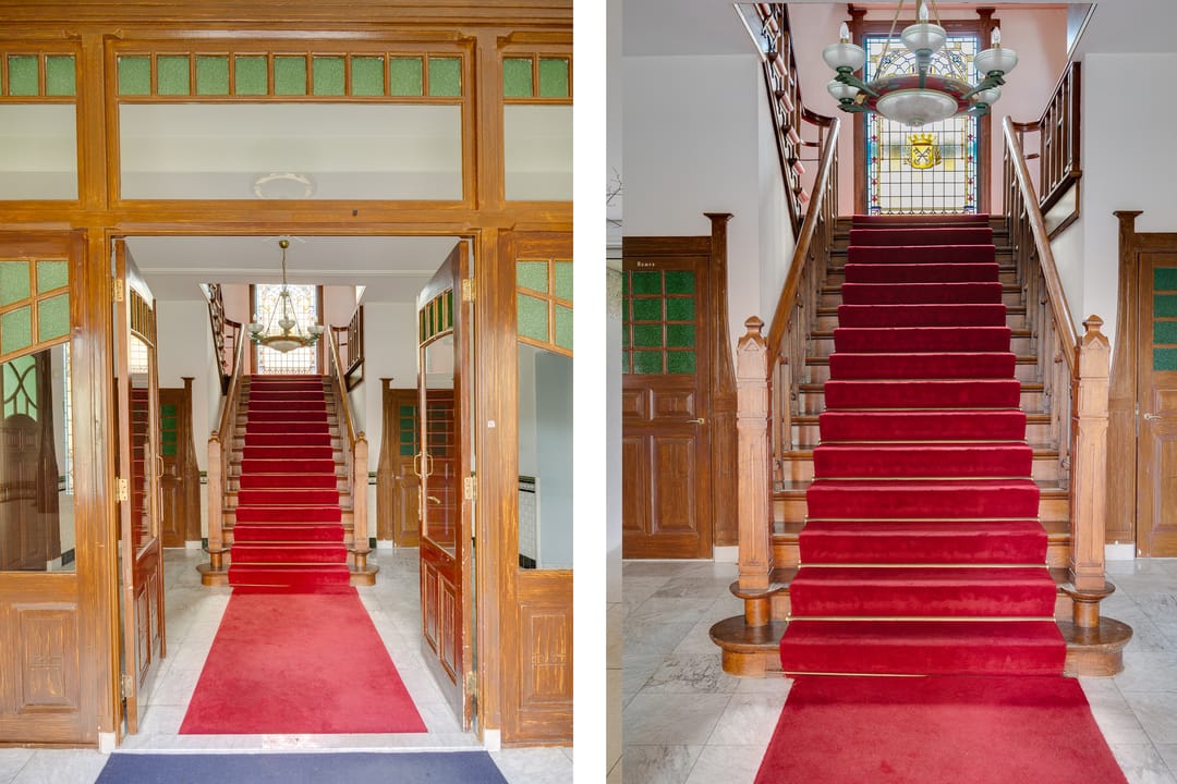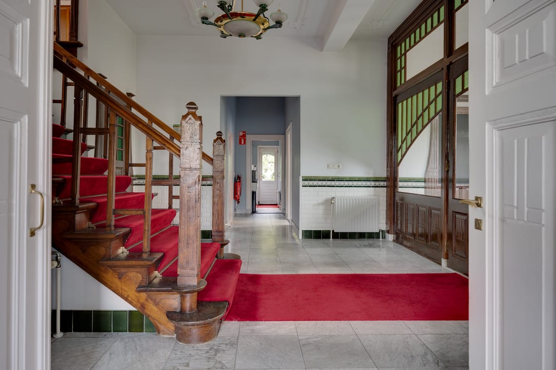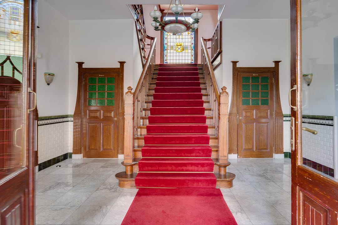 Stap binnen in dit stijlvolle monument. De fraaie entree met glas-in-loodramen, de hal met fraai betegelde lambrisering en het majestueuze trappenhuis geven karakter en authenticiteit.