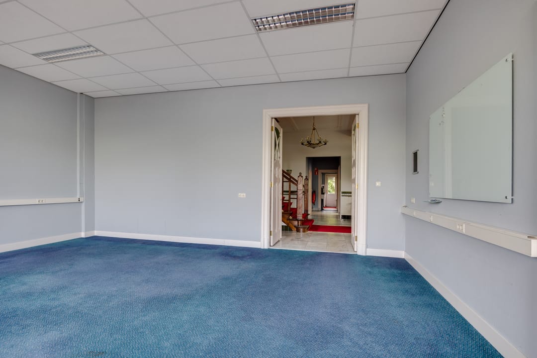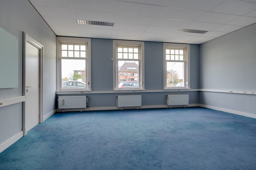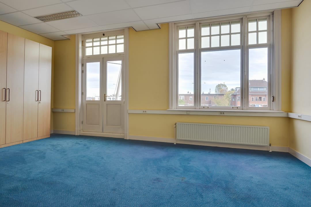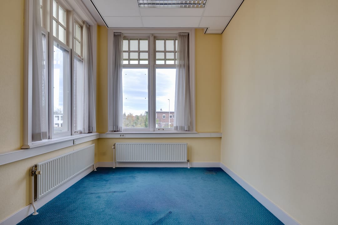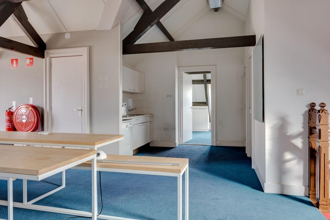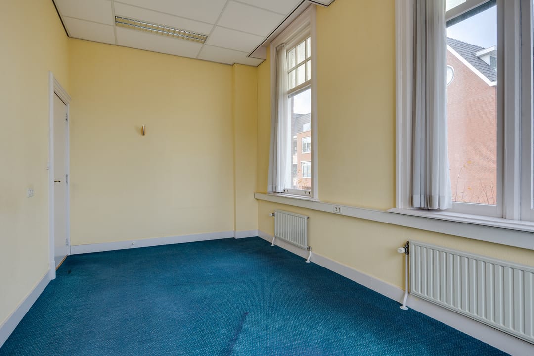 Op de eerste verdieping bevindt zich de voormalige bestuurskamer en 4 ruime kantoorkamers.