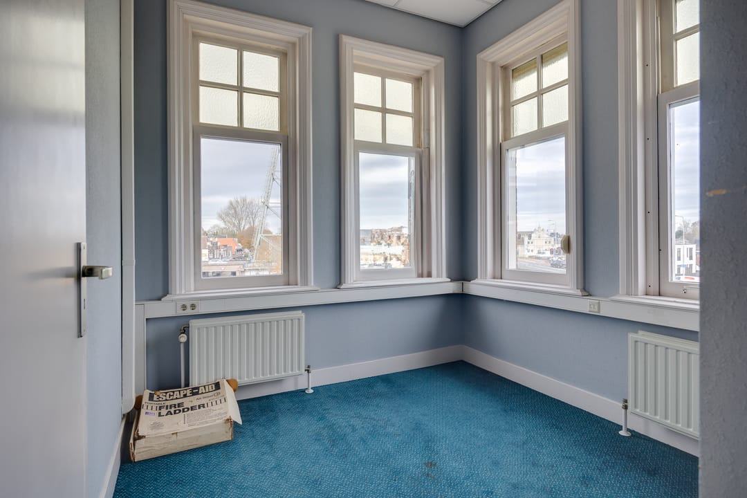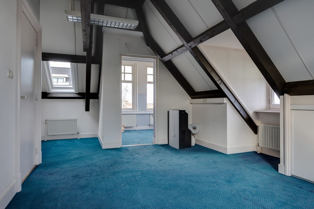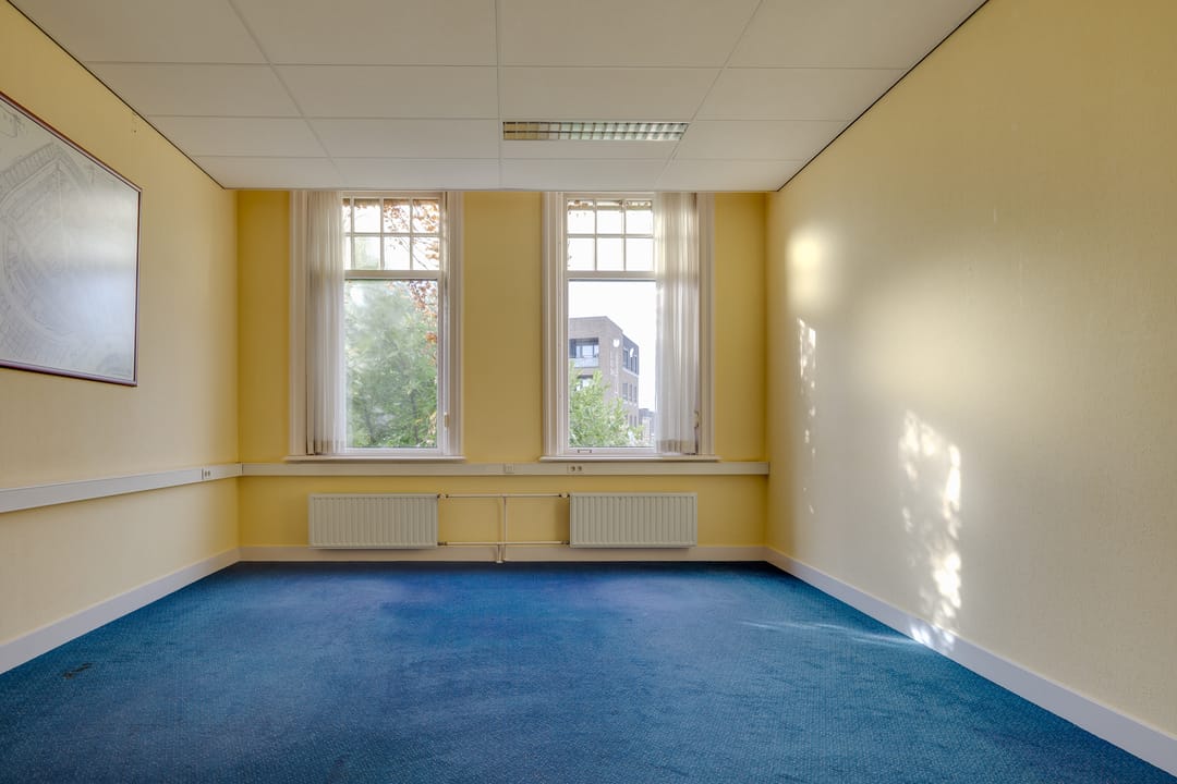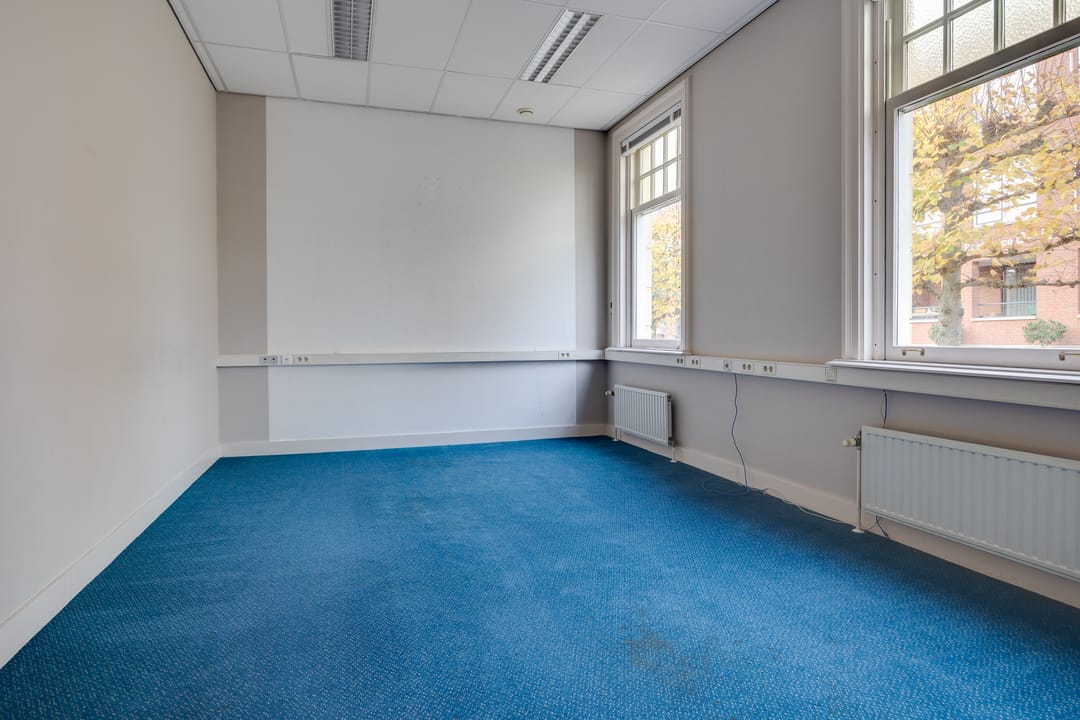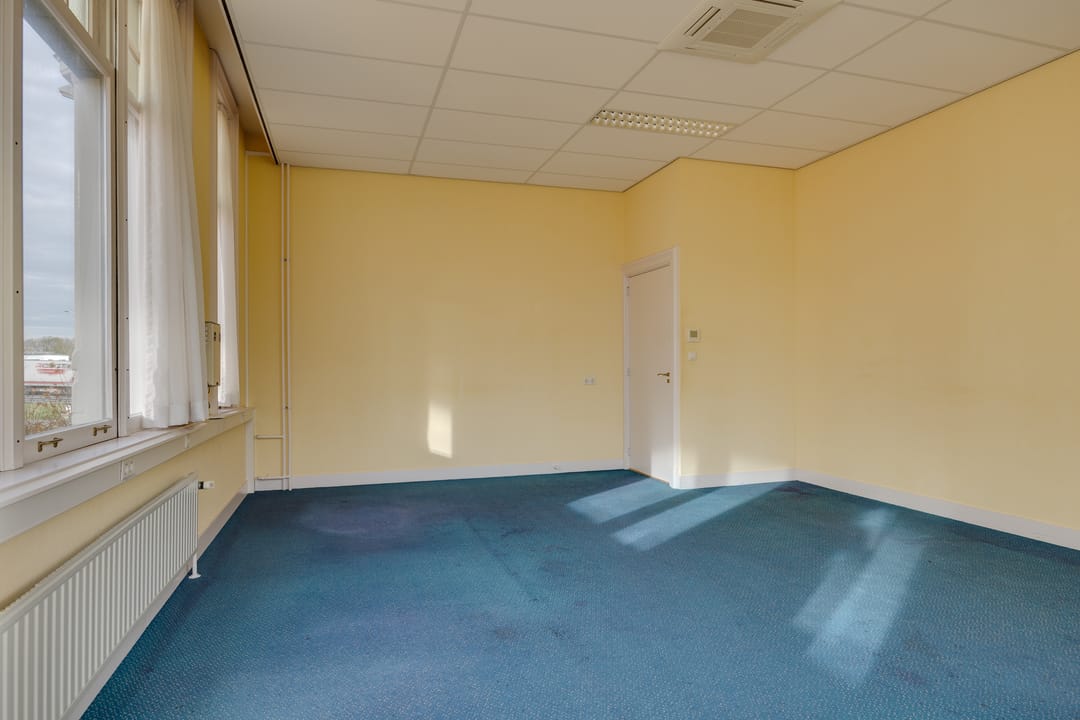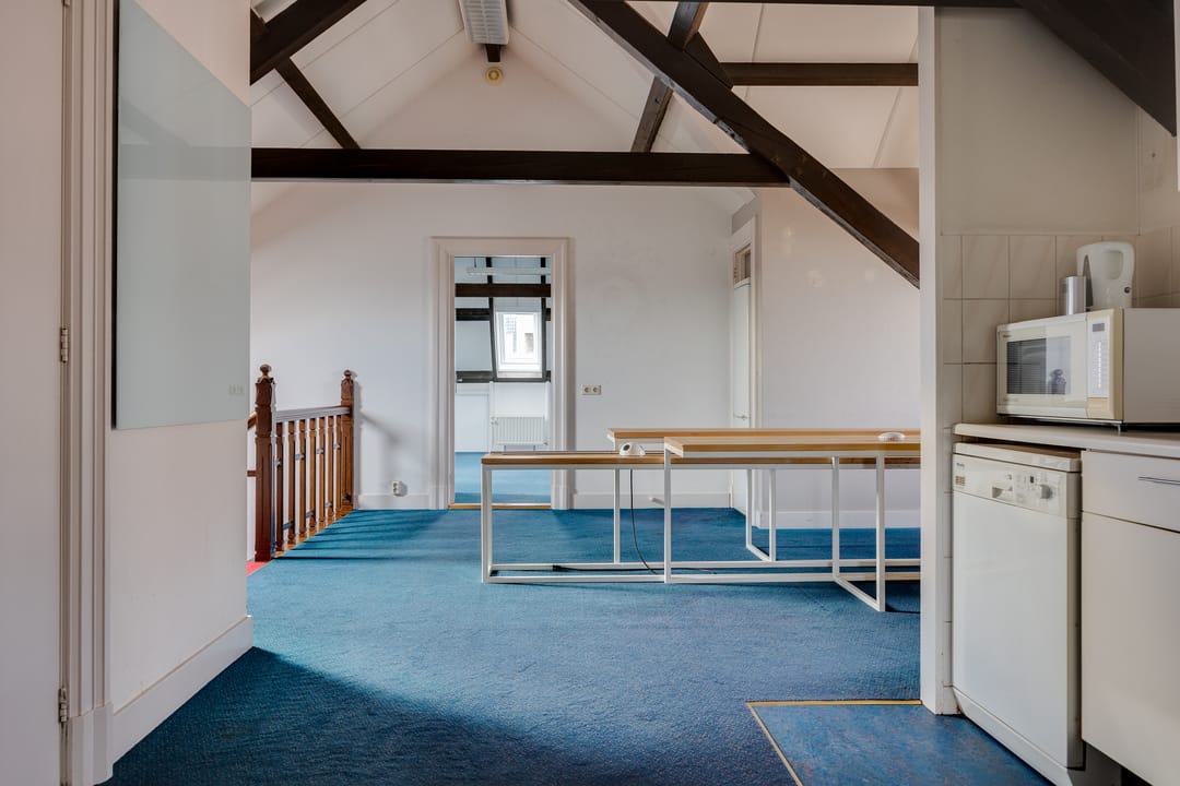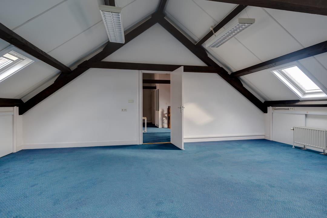 Op de eerste verdieping bevindt zich de voormalige bestuurskamer en 4 ruime kantoorkamers.