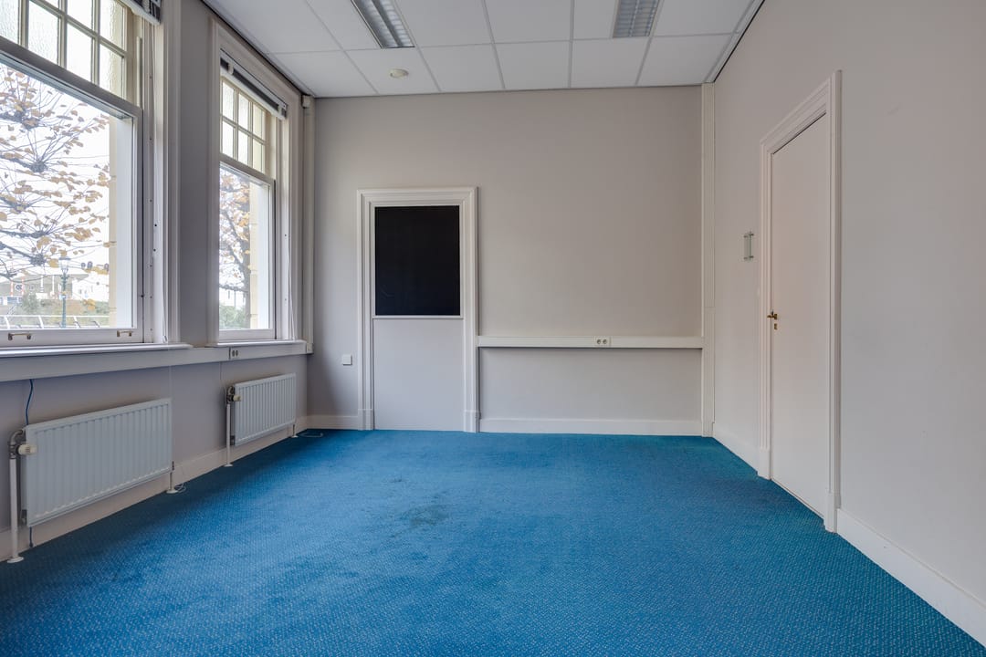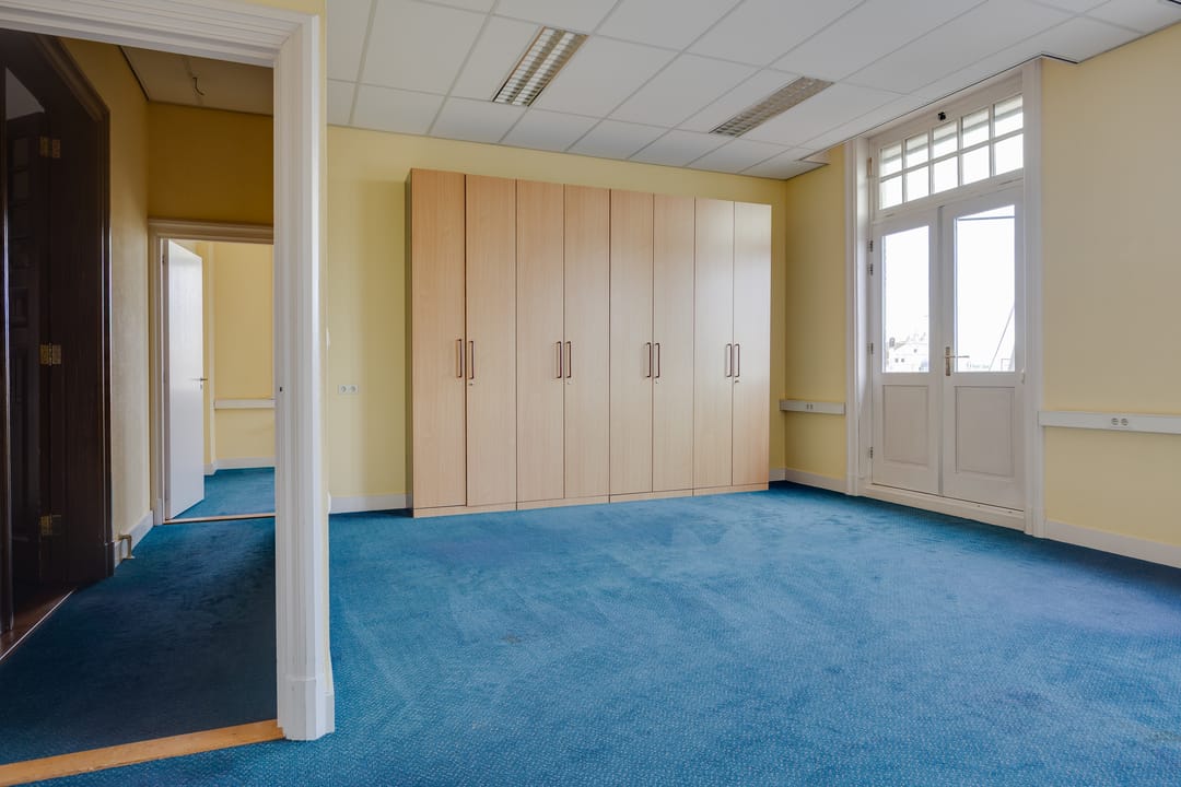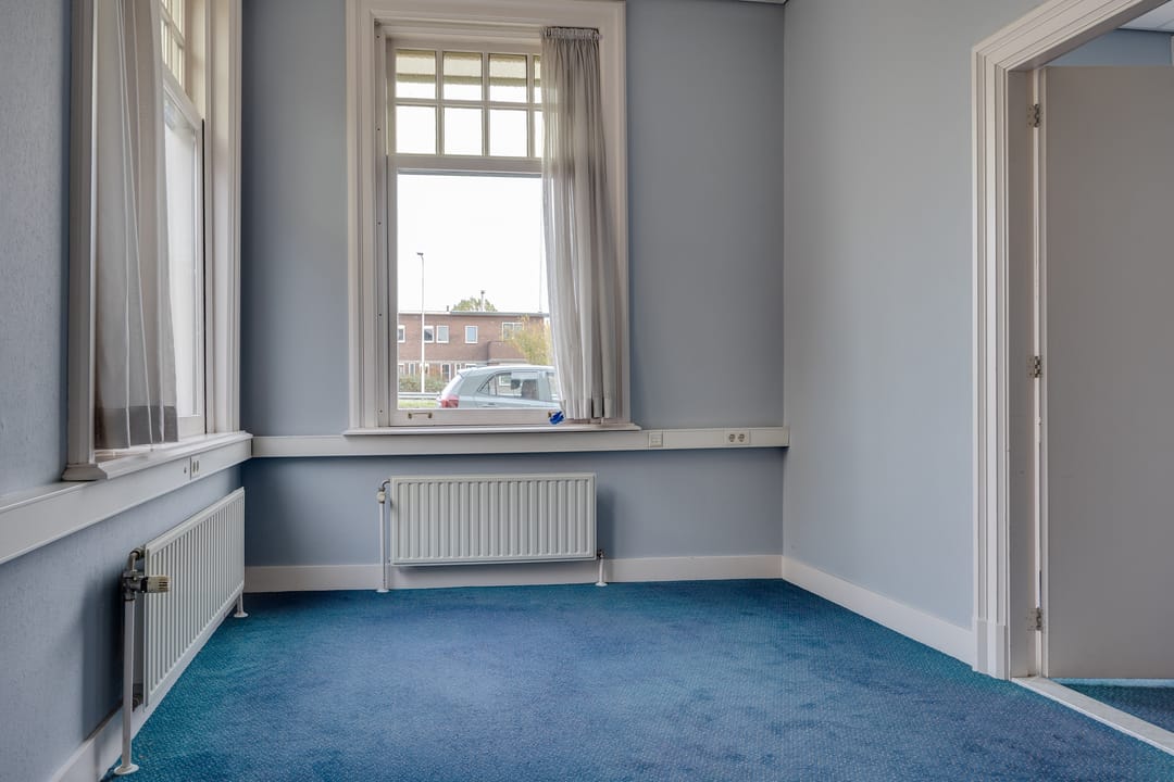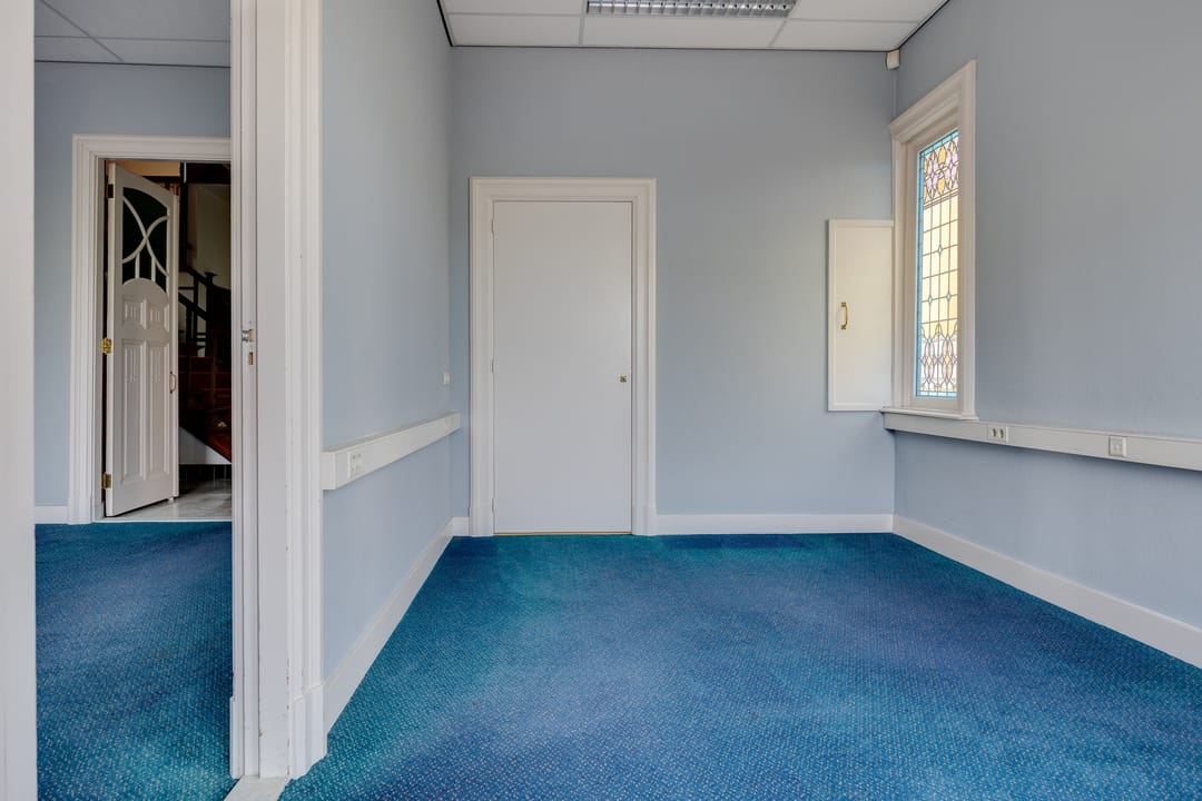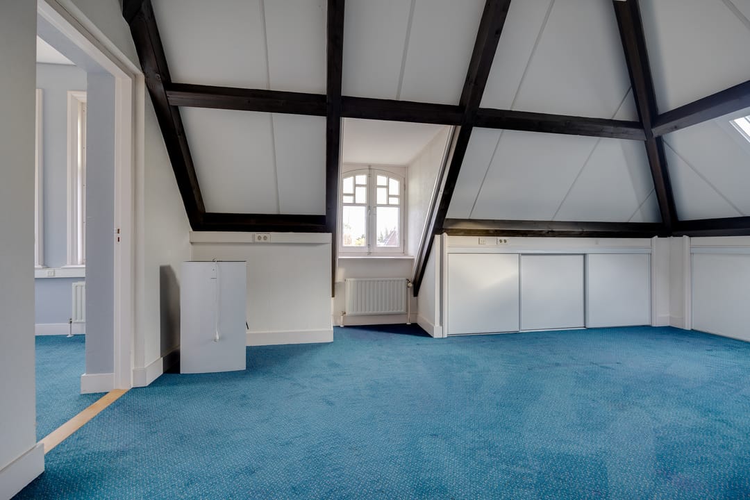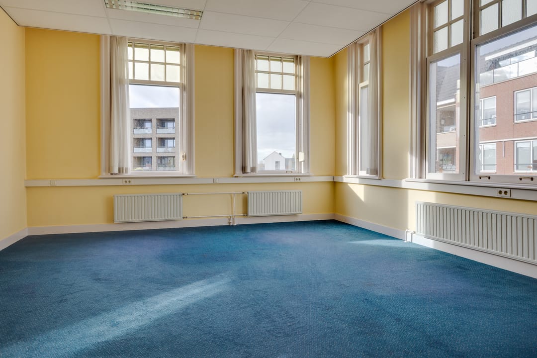 Op de eerste verdieping bevindt zich de voormalige bestuurskamer en 4 ruime kantoorkamers.