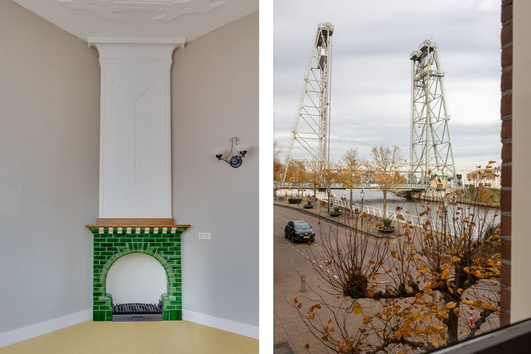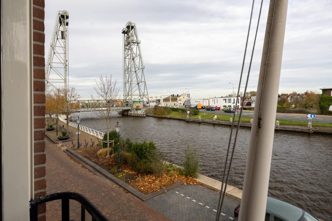 Aan de voorzijde van het gebouw heeft u een prachtig uitzicht op de gekanaliseerde rivier 'De Gouwe' en de monumentale hefbrug van Waddinxveen.