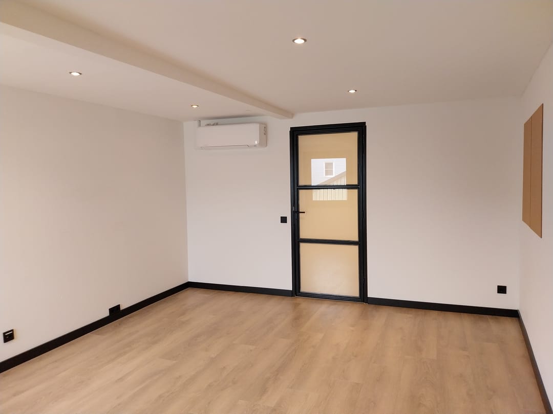 - Airconditioning, overheaddeuren, betonvloer, toilet, pantry, inbouwarmaturen en te openen ramen