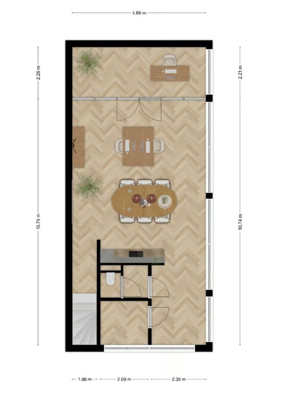 De genoemde metrages zijn niet bepaald op basis van een NEN-meting en derhalve indicatief en vrijblijvend van aard.
