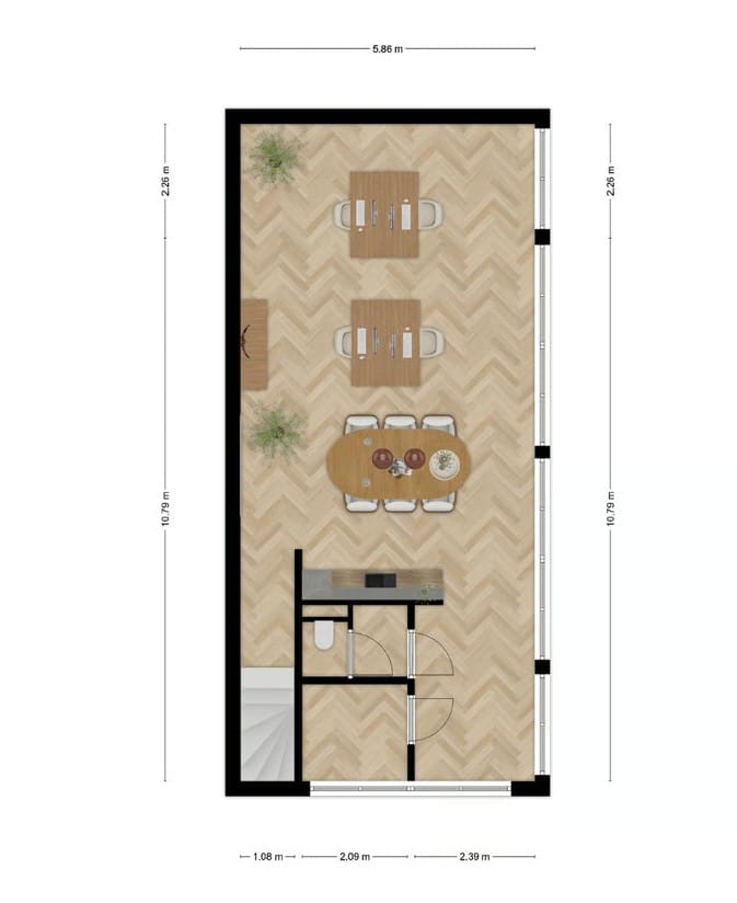 De casco binnenafwerking van de vloer, plafond, verlichting, wanden en pantry, zijn volledig naar eigen smaak te realiseren.