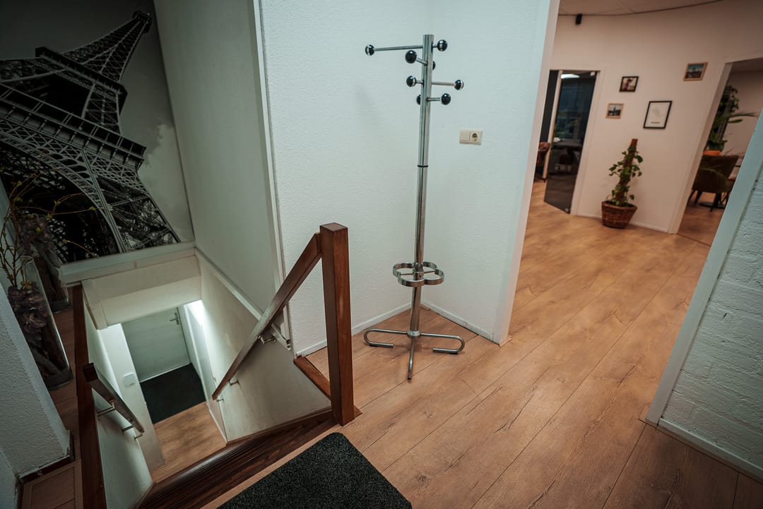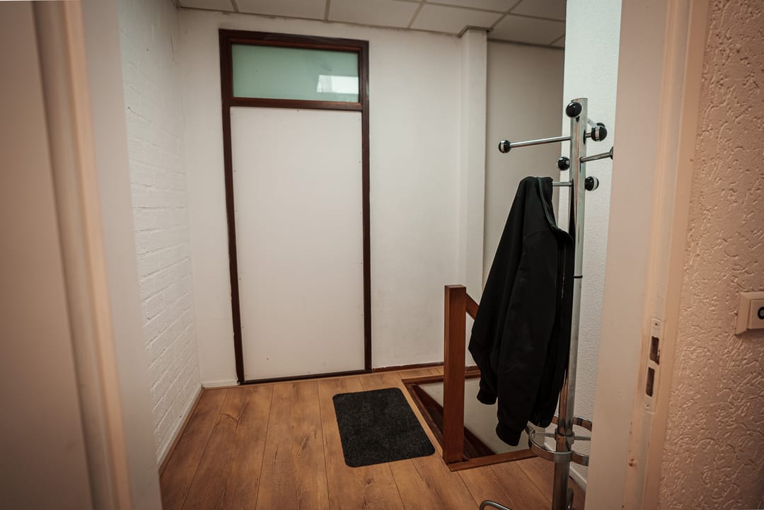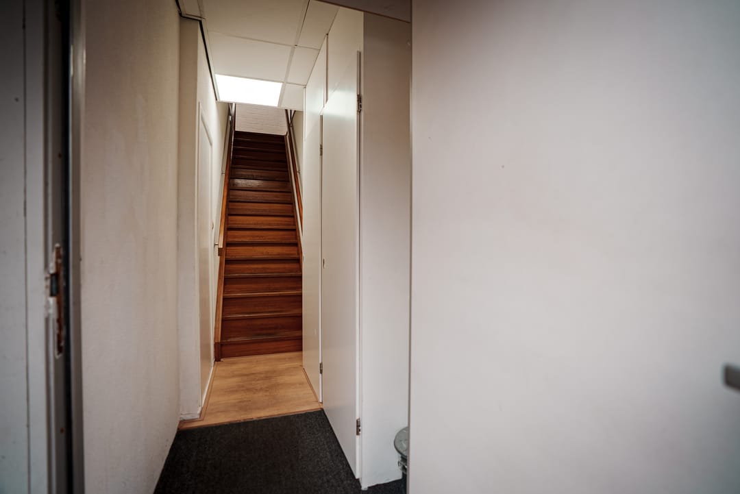 Eigen entree met hal en trapopgang naar de eerste verdieping.
