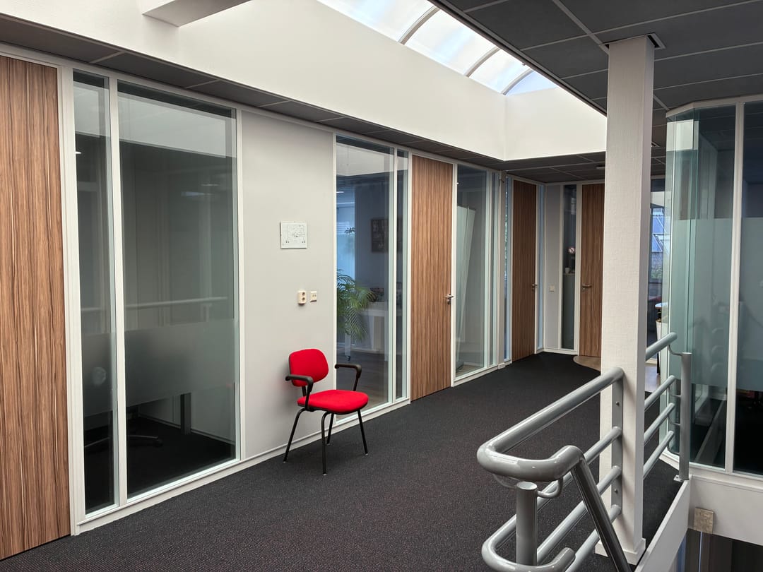 Diverse afsluitbare kantoorruimtes beschikbaar, voorzien van vloerbedekking van tapijt en pvc.