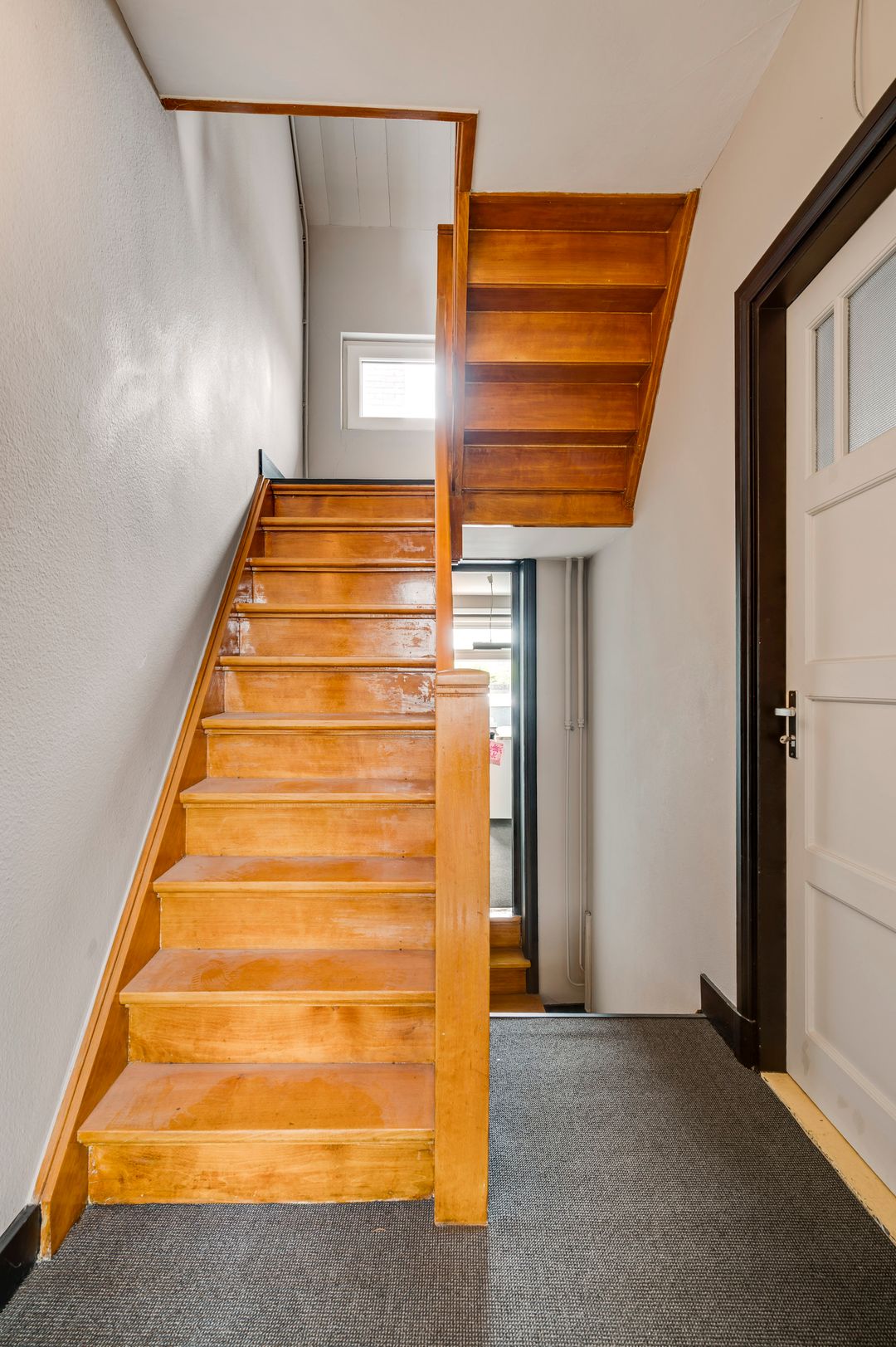 De begane grond bestaat uit een representatieve winkelruimte van ca. 36 m² aan de straatzijde. Dankzij de hoge raampartijen, het glas-in-lood boven de entree en de karakteristieke gevel heeft deze ruimte een herkenbare uitstraling binnen het straatbeeld. De tegelvloer, het systeemplafond met verlichting en de airco zorgen voor een nette werkomgeving die geschikt is voor onder meer detailhandel of dienstverlening.