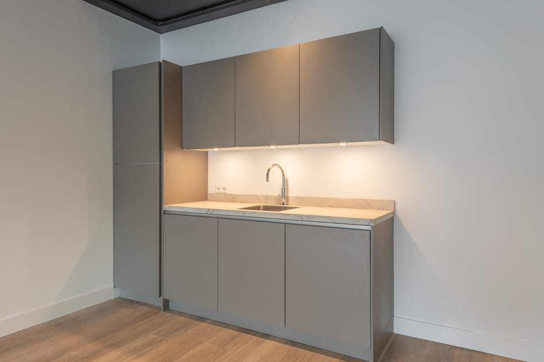 -Pantry op de 1e verdieping met spoelbak, koelkast, Quooker Flex en vaatwasmachine