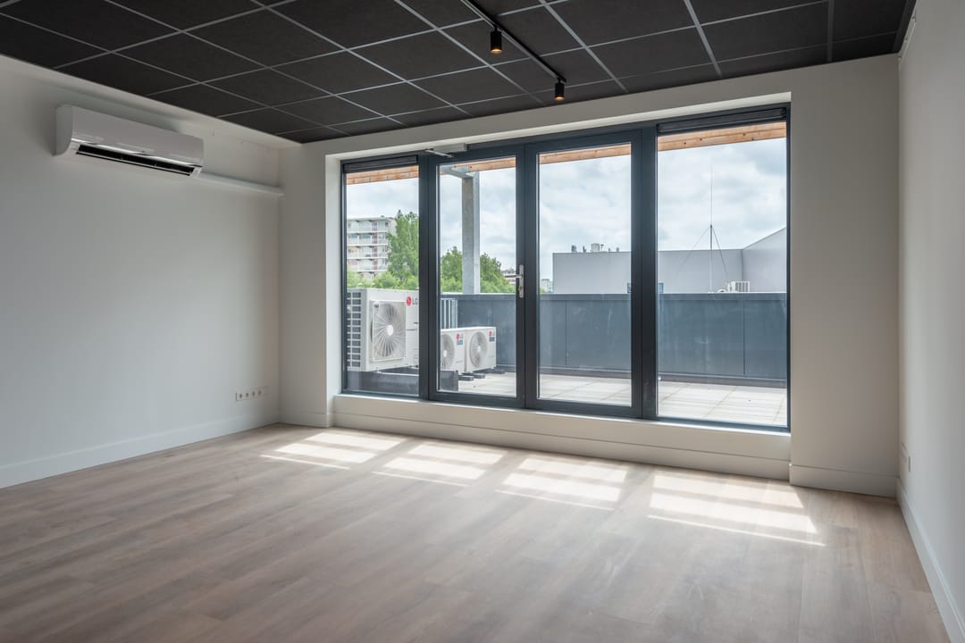 De kantoorruimte heeft een verhuurbaar vloeroppervlak van circa 108 m² vvo, verdeeld over twee verdiepingen, en is recent turnkey opgeleverd. Dankzij de aanwezigheid van een warmtepompsysteem met vloerverwarming en vloerkoeling, airconditioning op beide verdiepingen en zonnepanelen, biedt deze ruimte een comfortabel en toekomstbestendig werkklimaat.
