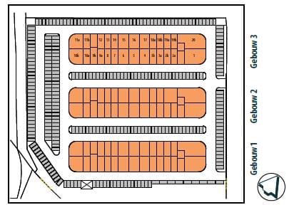 NB de units 22, 23, 26 en 27 kunnen worden vergroot of worden verkleind met delen van 16 m² !