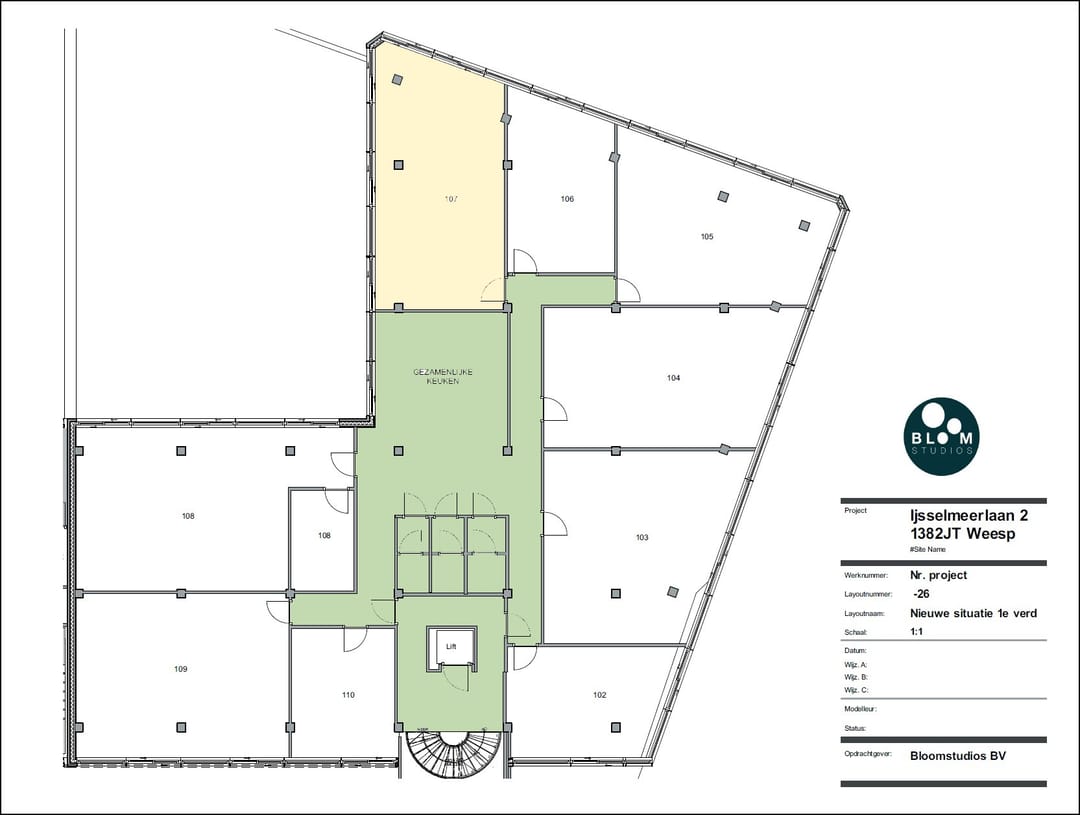 1e verdieping: unit 107 - ca. 42 m² netto - € 650 per maand excl. BTW all-inclusive